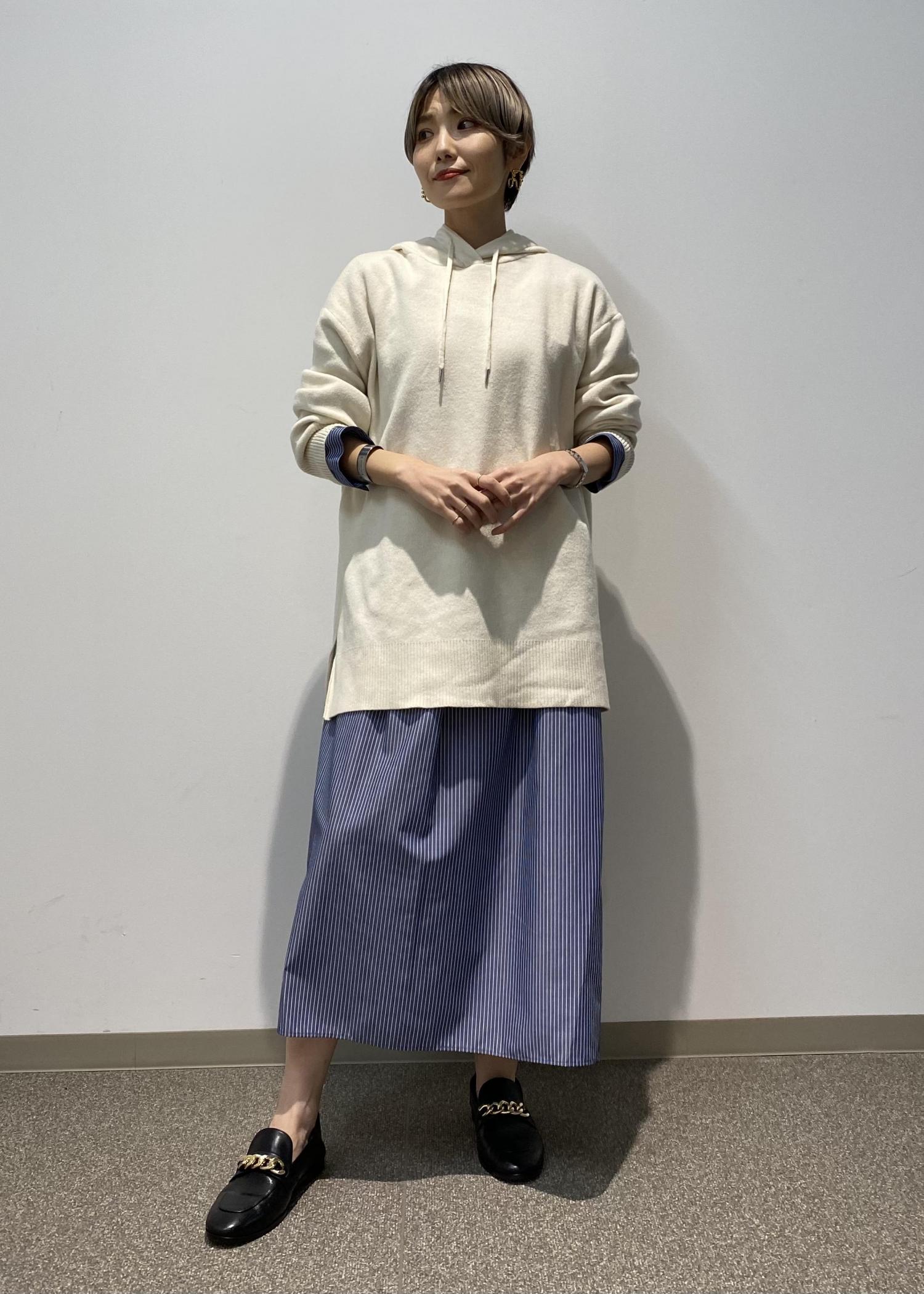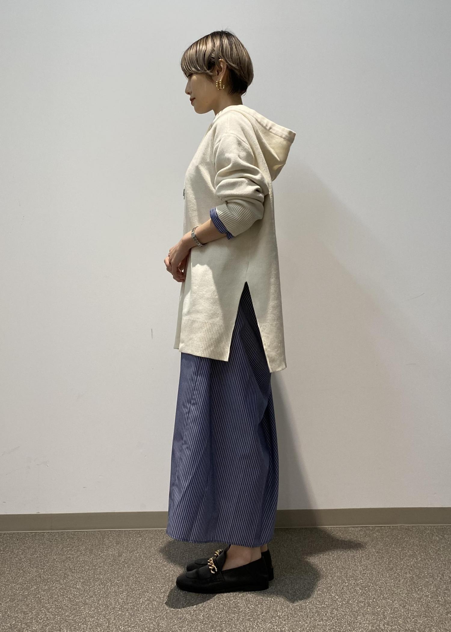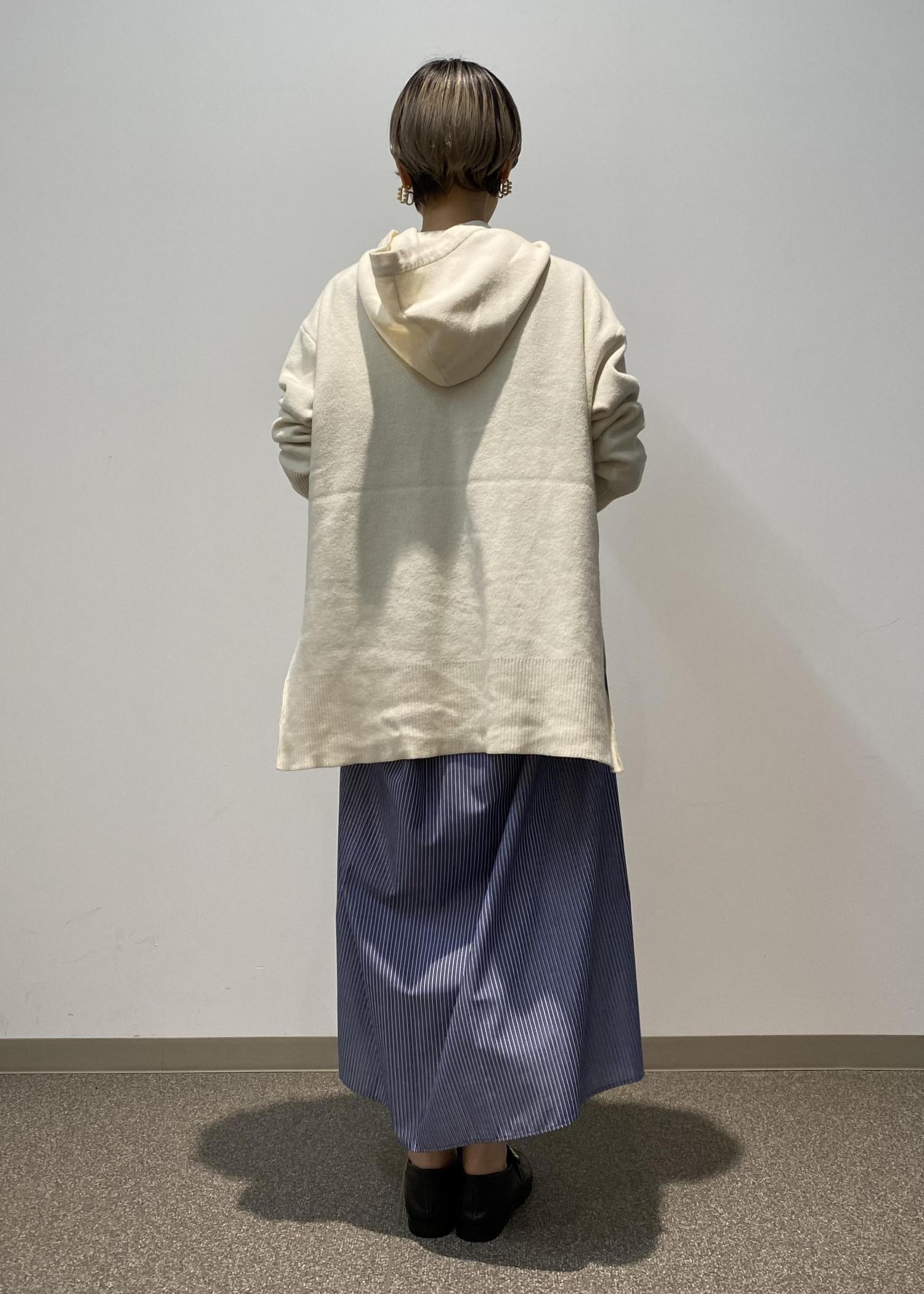 軽い着心地のニットパーカーは色々と着回しが効く優秀アイテムでワンピース合わせや、スカート、パンツと合わせと雰囲気を変えられる為一枚あるととても便利です。是非お試しになってみて下さい。
