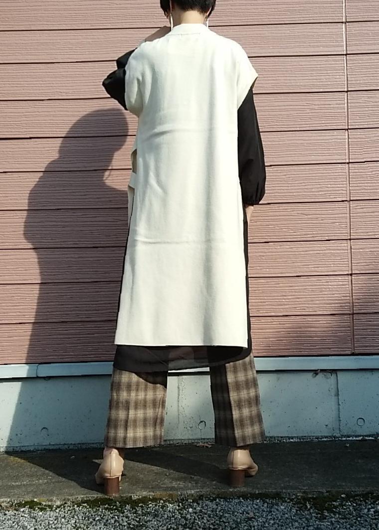 シャツワンピをロングニットベストと合わせ、トレンドのレイヤードスタイルにしてみました。パンツだけでなく、プリーツスカートにブーツを合わせたスタイルもおすすめです。