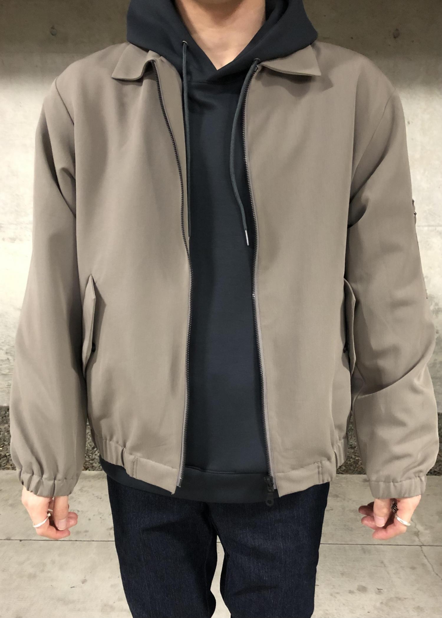 着用のフライシルケットプルパーカーは、光沢感のあるキレイめ素材なので、ブルゾンはもちろん、コートのインナーとしても活躍するアイテムです!
