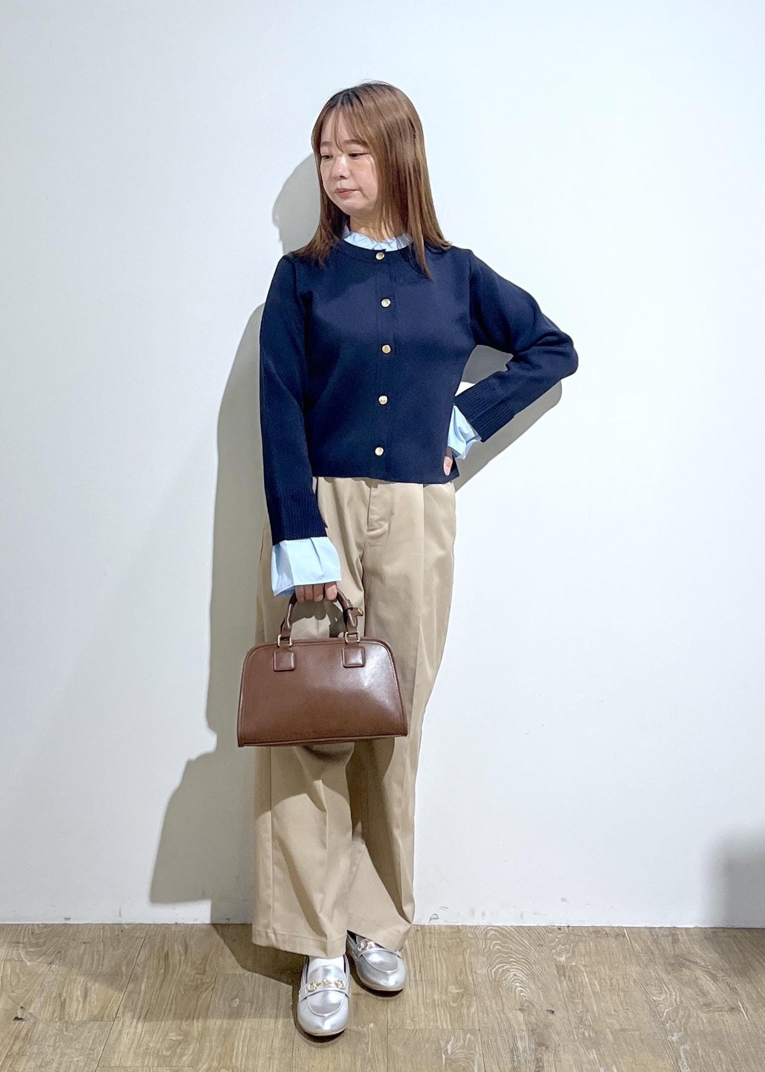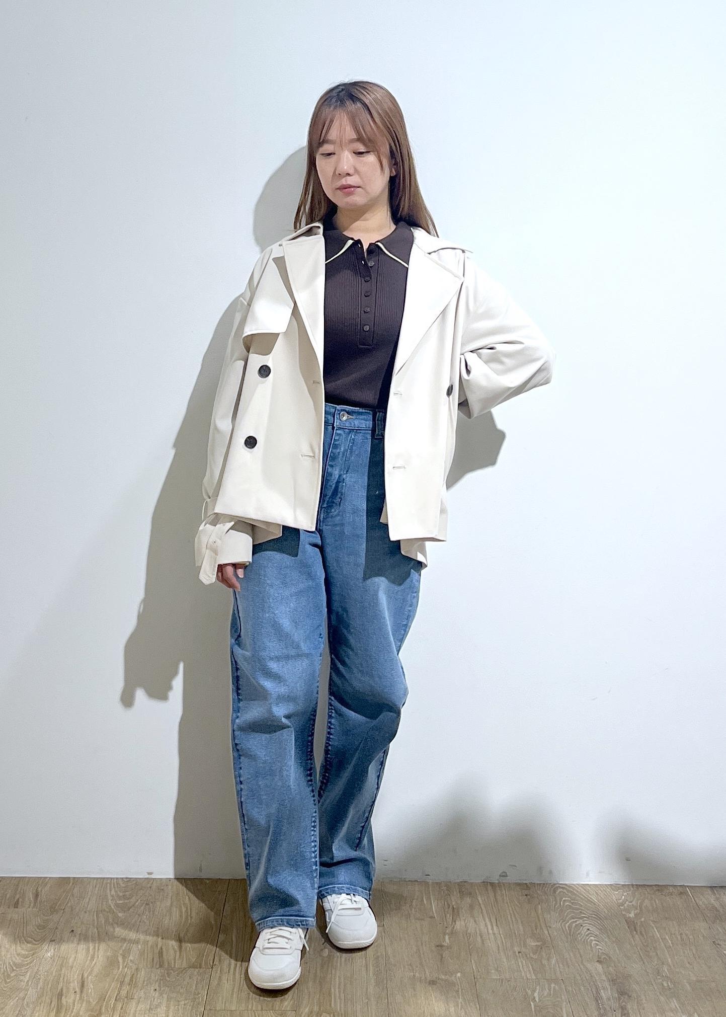 フェイクウールスタンドブルゾンを使ったコーデです。 ベーシックなデザインなため、インナー、パンツ問わずマッチします。今年はワイドパンツとのトレンド感のある緩めのスタイリングがおすすめです!