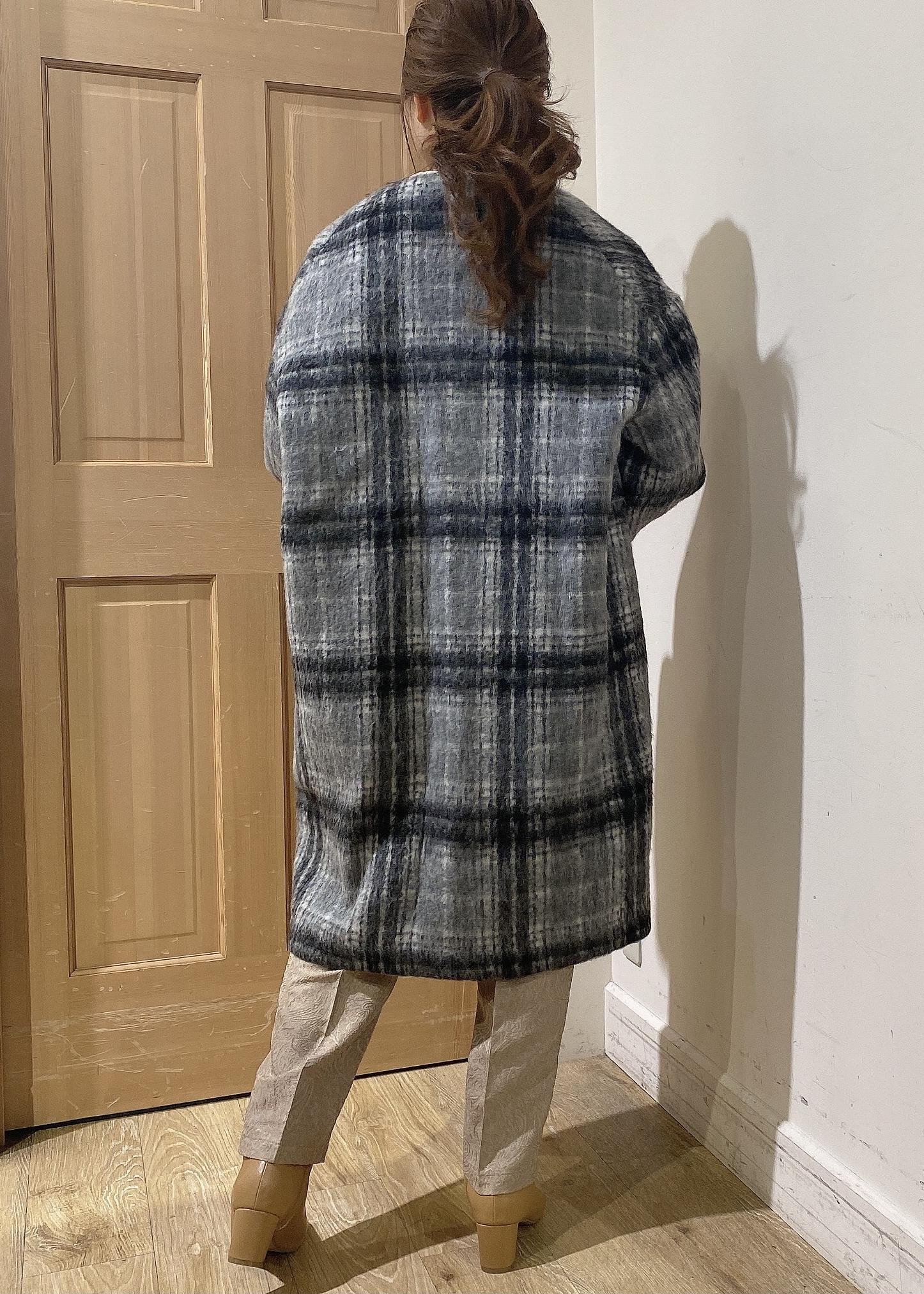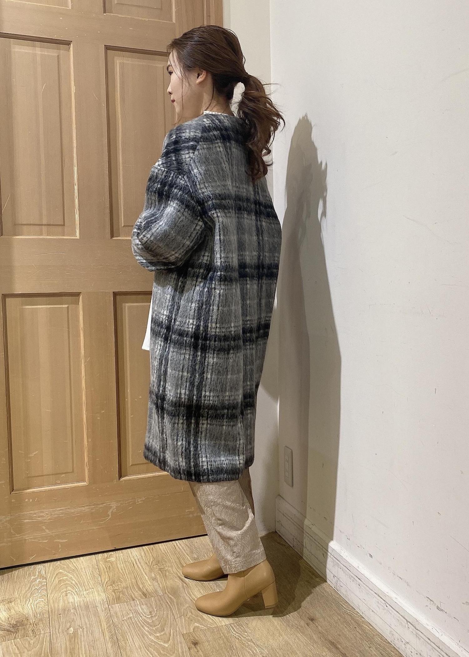 存在感のあるチェック柄のコートが目を引きます! 丈も長すぎないので低身長の方でも着用しやすいです* 中はシンプルですが、1枚でオシャレに決まるレイヤードトップスでコートを脱いでもスタイリッシュな印象を与えてくれます!