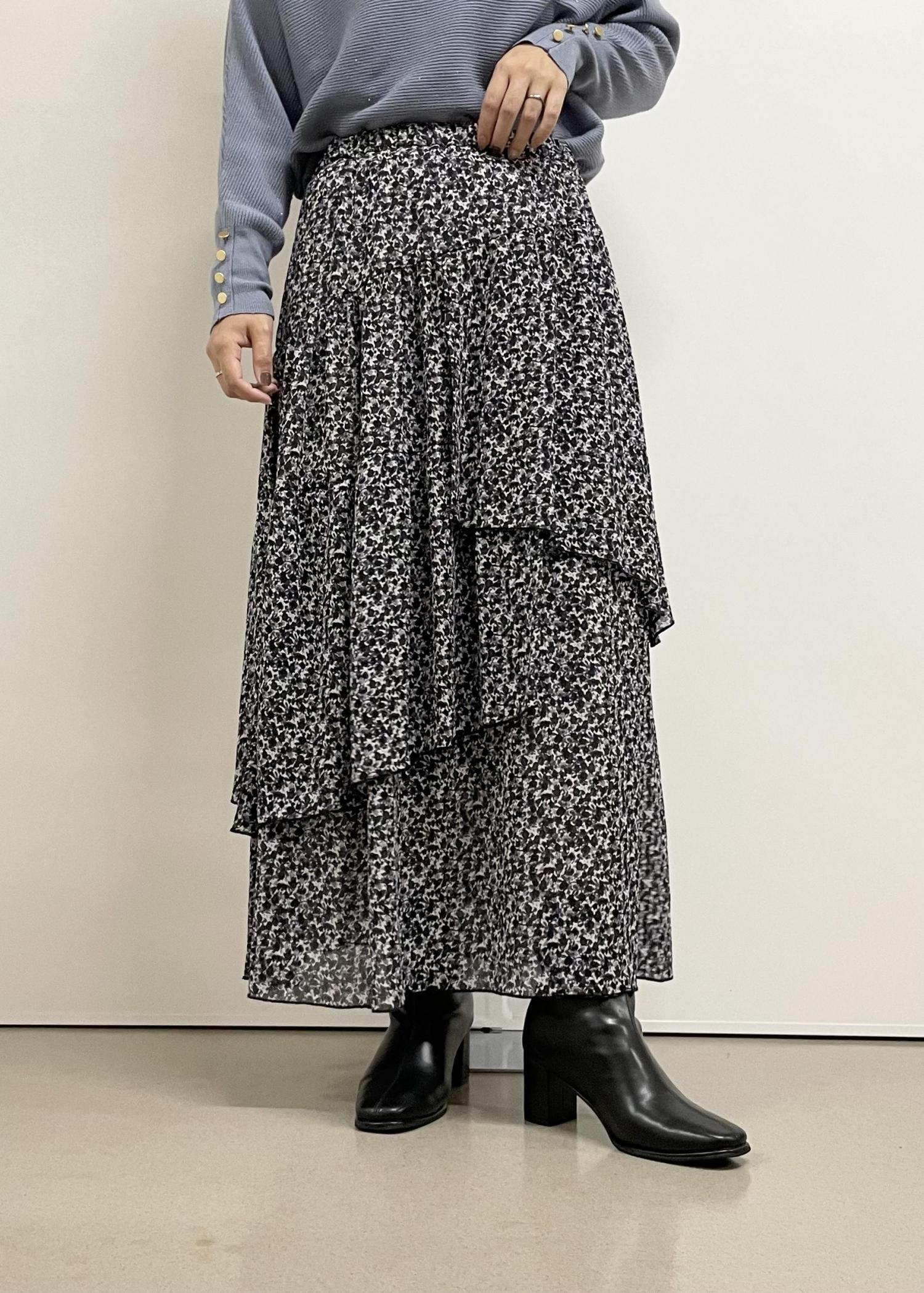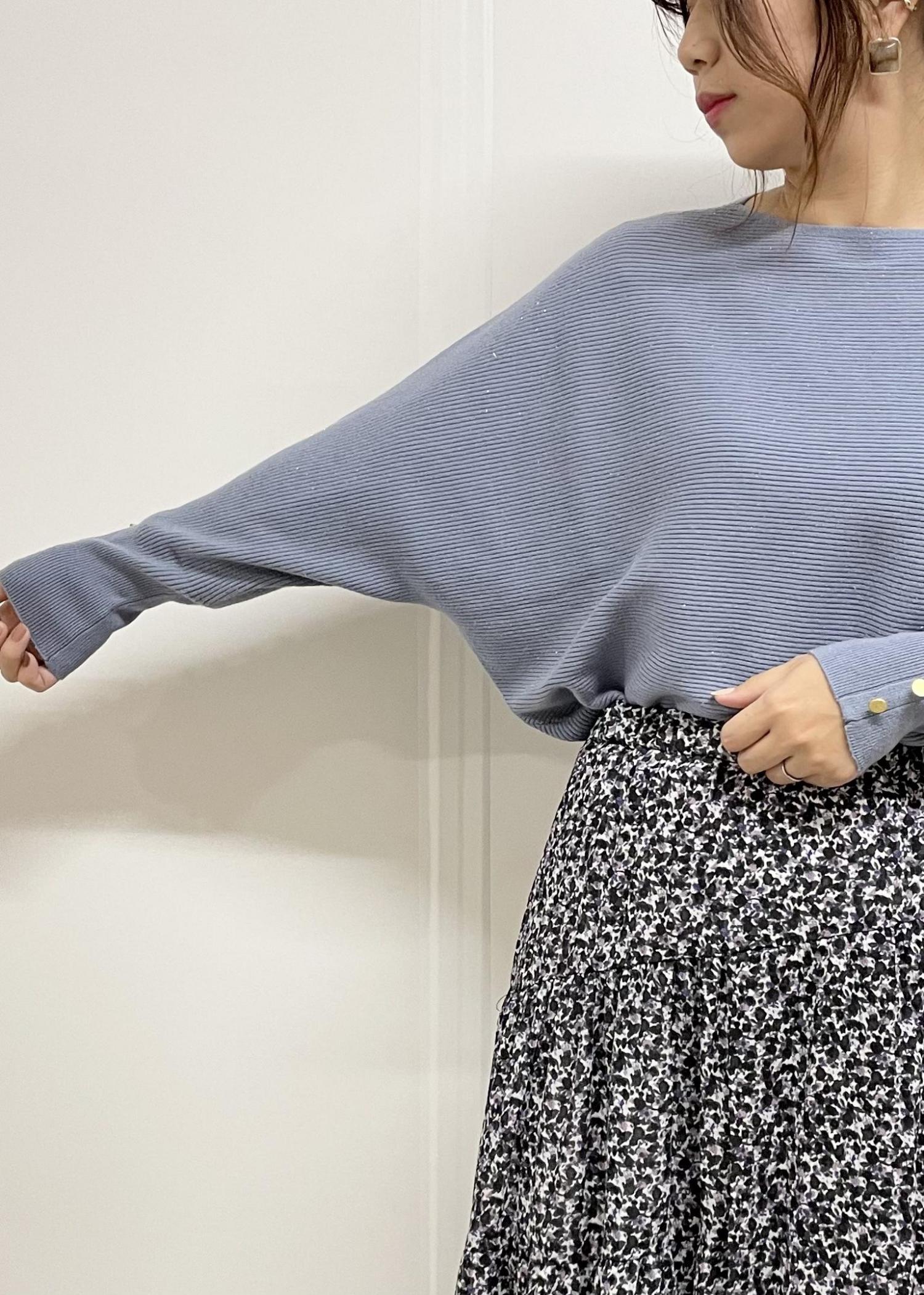 毎年大人気のラメドルマンニット♡ 今年は袖口リブを長めにゴールド釦で華やかさをプラス◎ 程よい光沢感が女らしいニットに ランダムティアードのスカートを合わせました! 歩くたびに揺れるので上品で素敵です♡