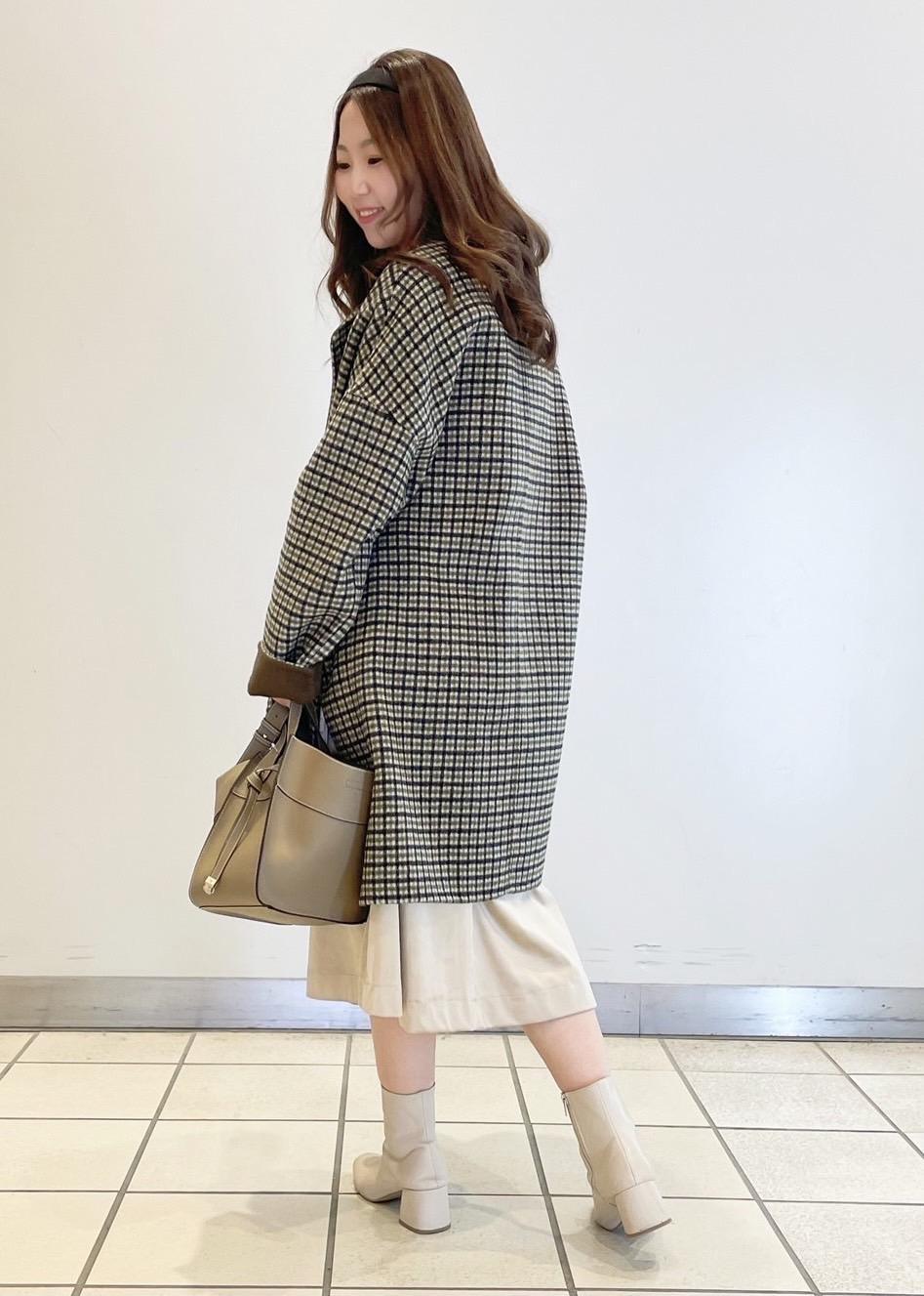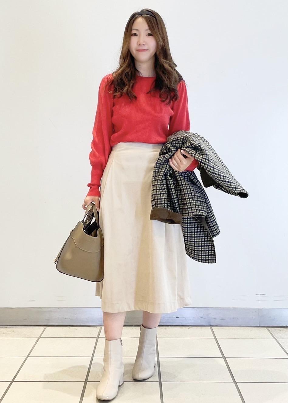 スカートを合わせて女性らしく可愛らしい印象に。