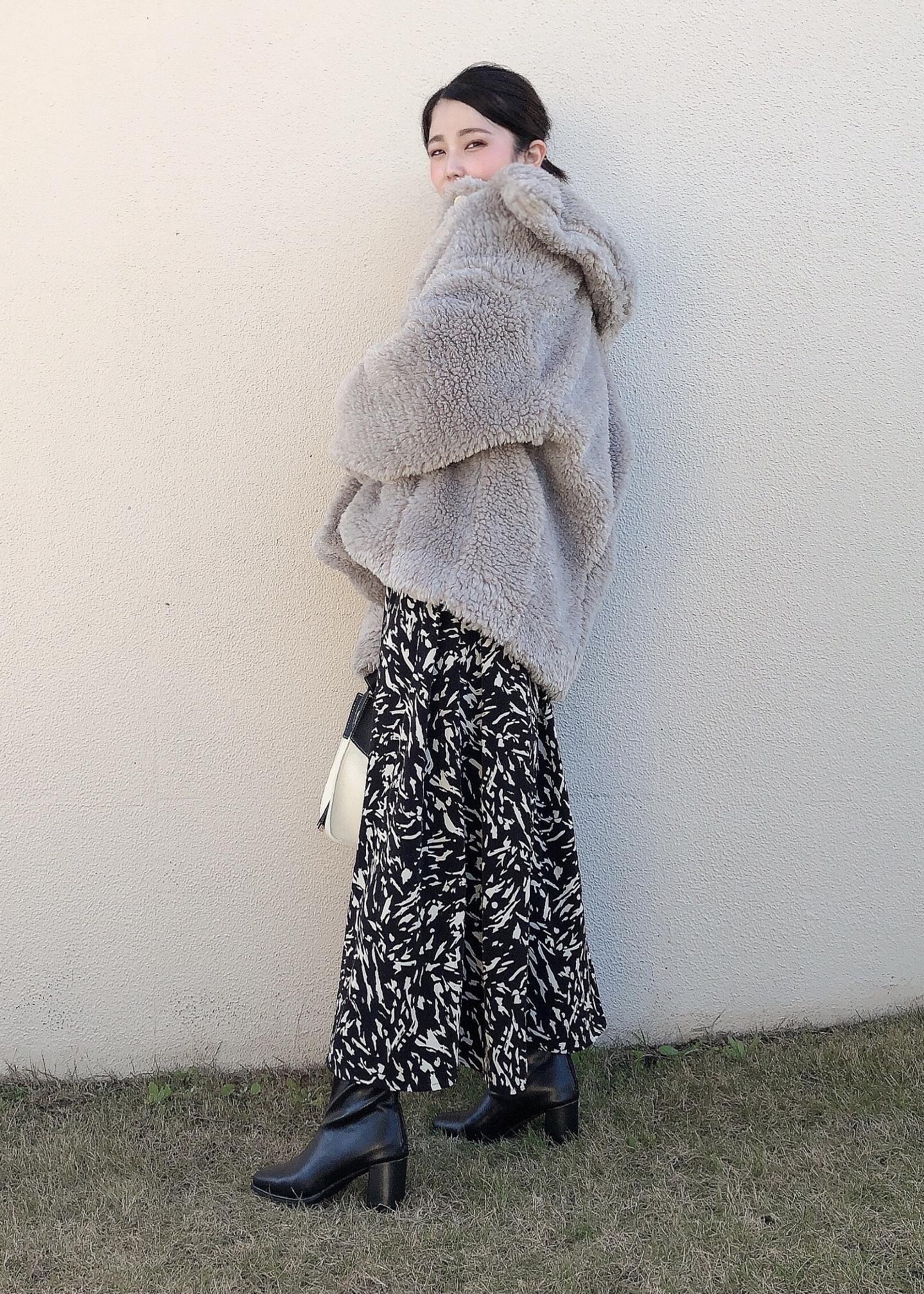 モコモコが可愛いボリューム感のあるアウターを主役にしました☺︎