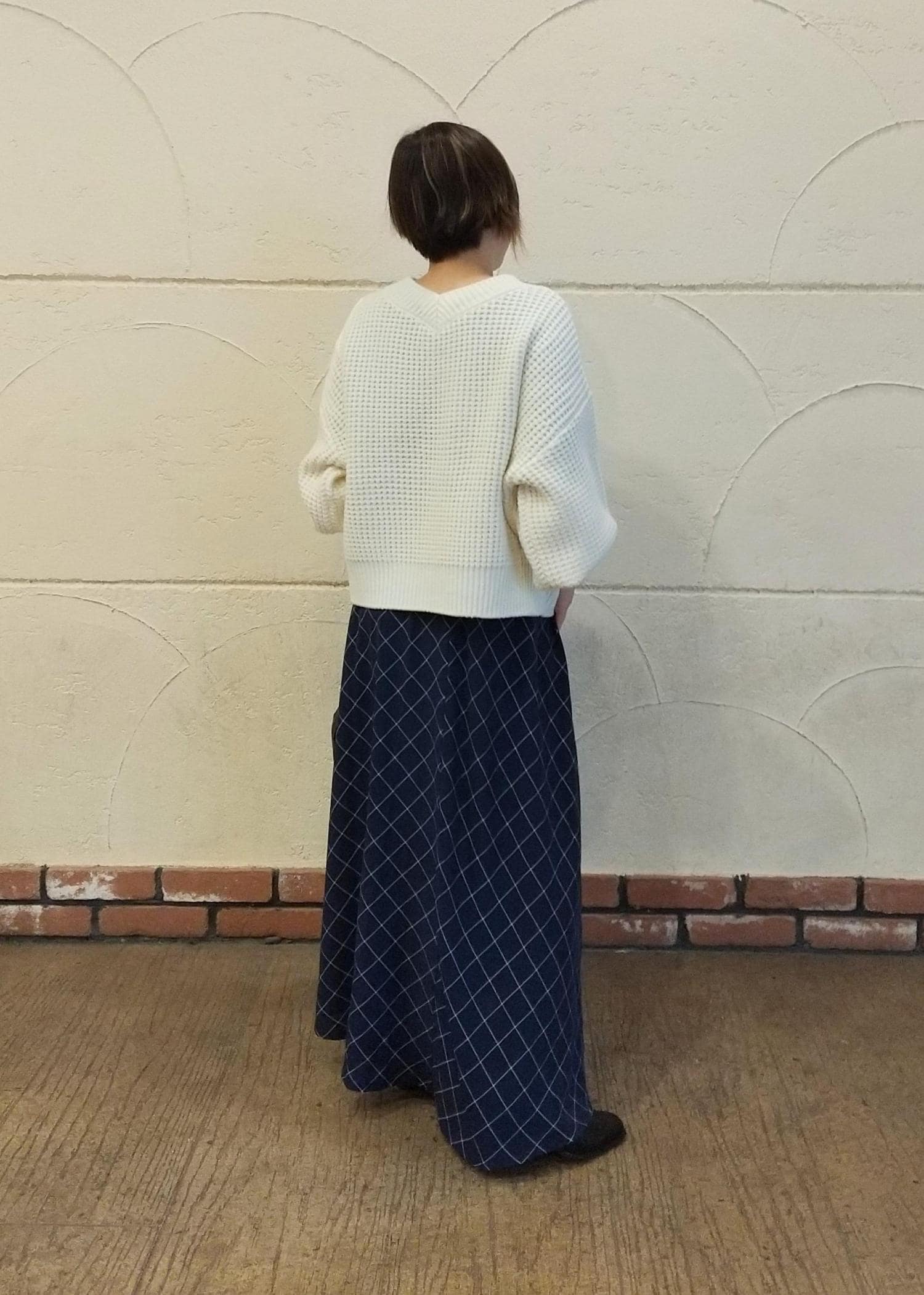 スカートが落ち着いたカラーになりますので、トップスは白を選び明るく見える よう意識しました。 ※店頭及び野外での撮影画像は、光の 当たり具合で色味が異なって見える事が ございます。 商品の色味はスタジオ撮影の画像を 御参照下さい。