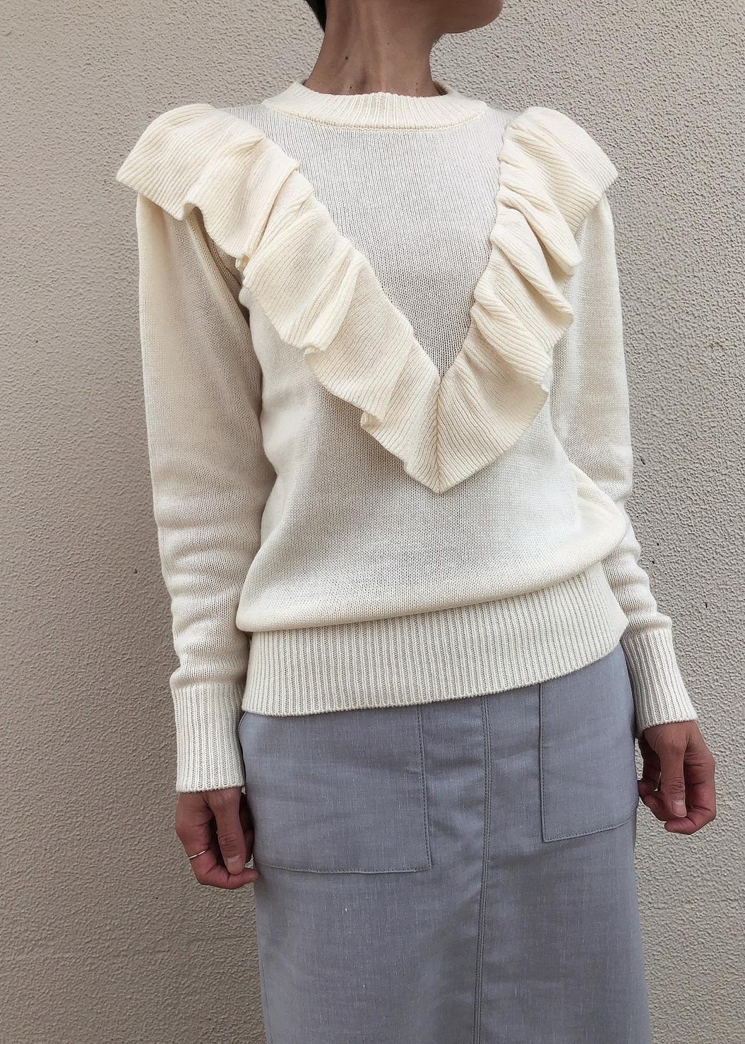 ニットのフリルは前側だけなのでコートインしやすくなっています。