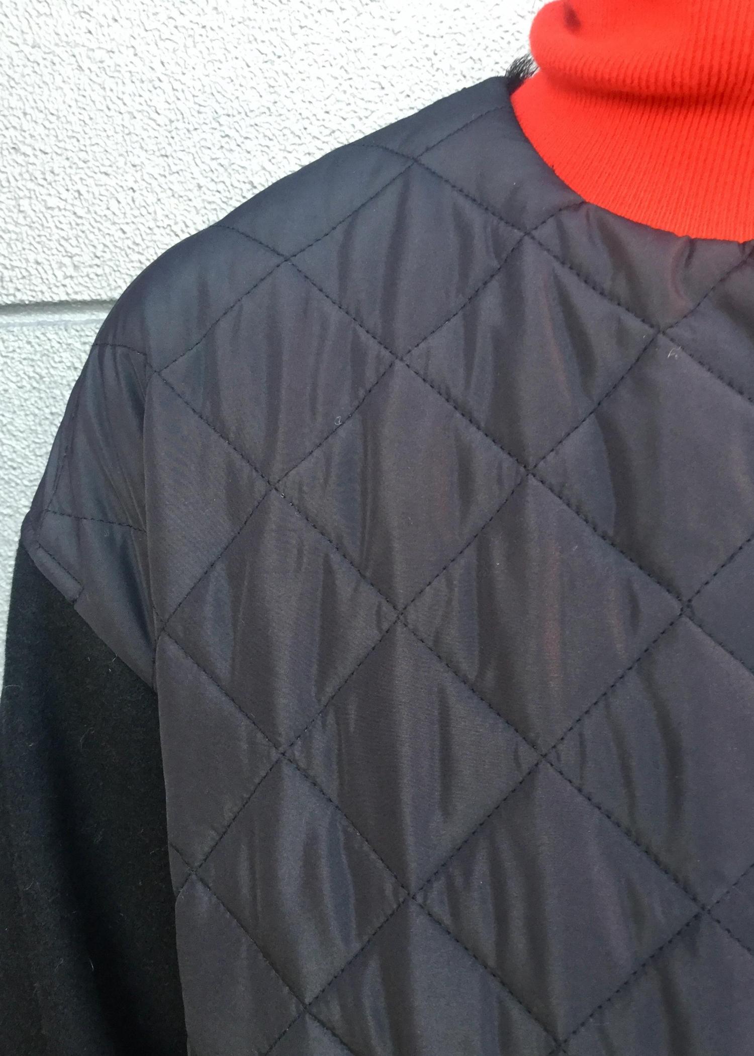 袖部分がメルトン素材の切り替えになったキルティングのロングコート。