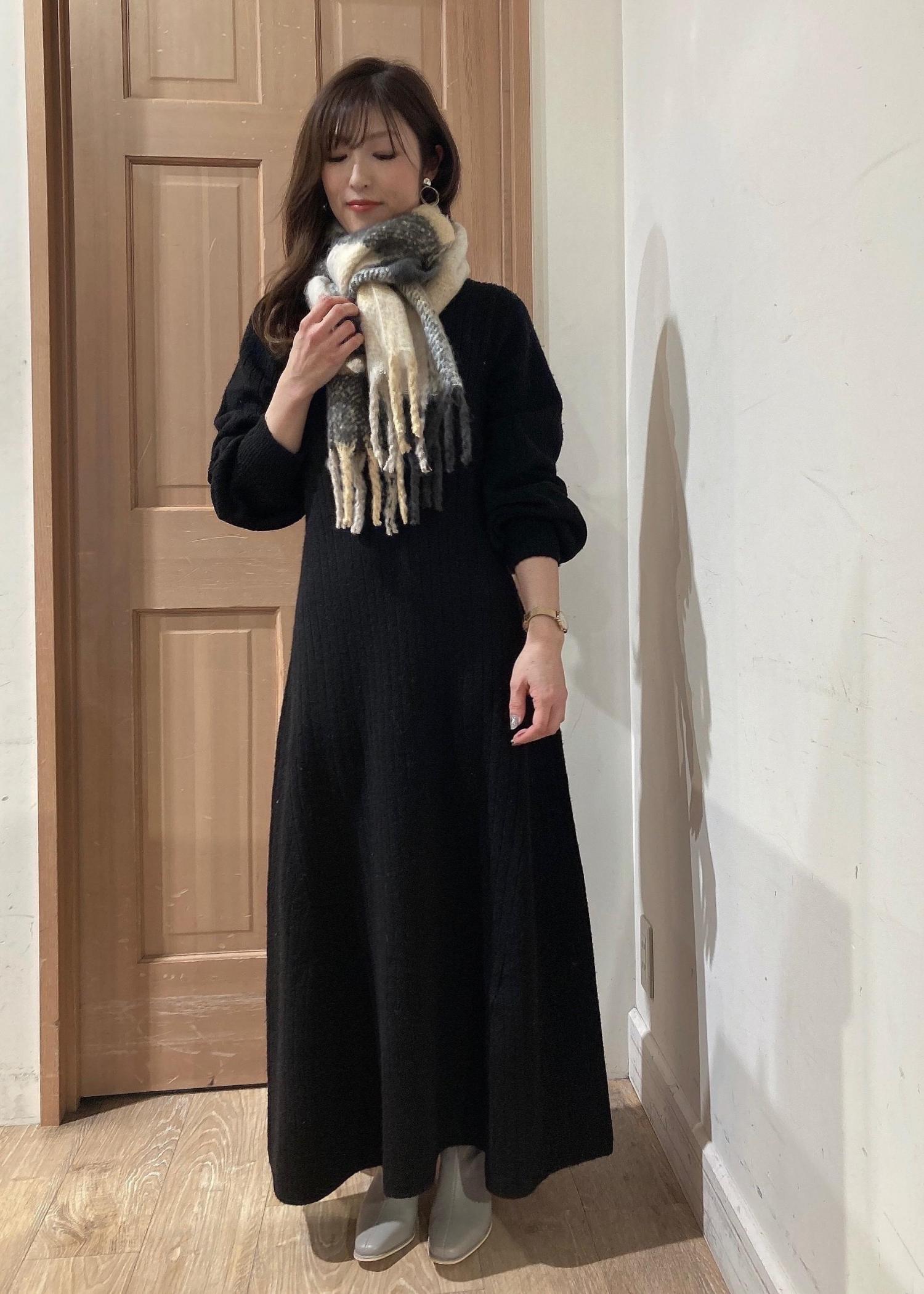 シンプルなニットワンピースですがAラインシルエットでスタイルアップが叶います☆スニーカーと合わせたカジュアルスタイルも素敵ですよ!