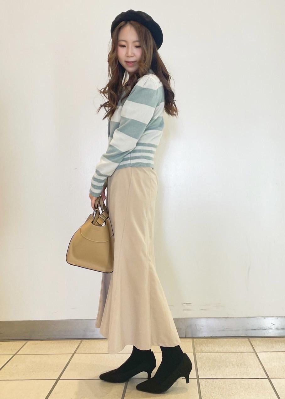 トレンドのマーメイドスカートを合わせました。