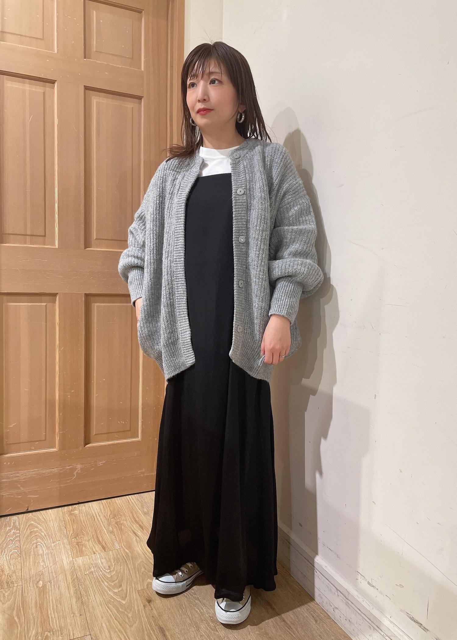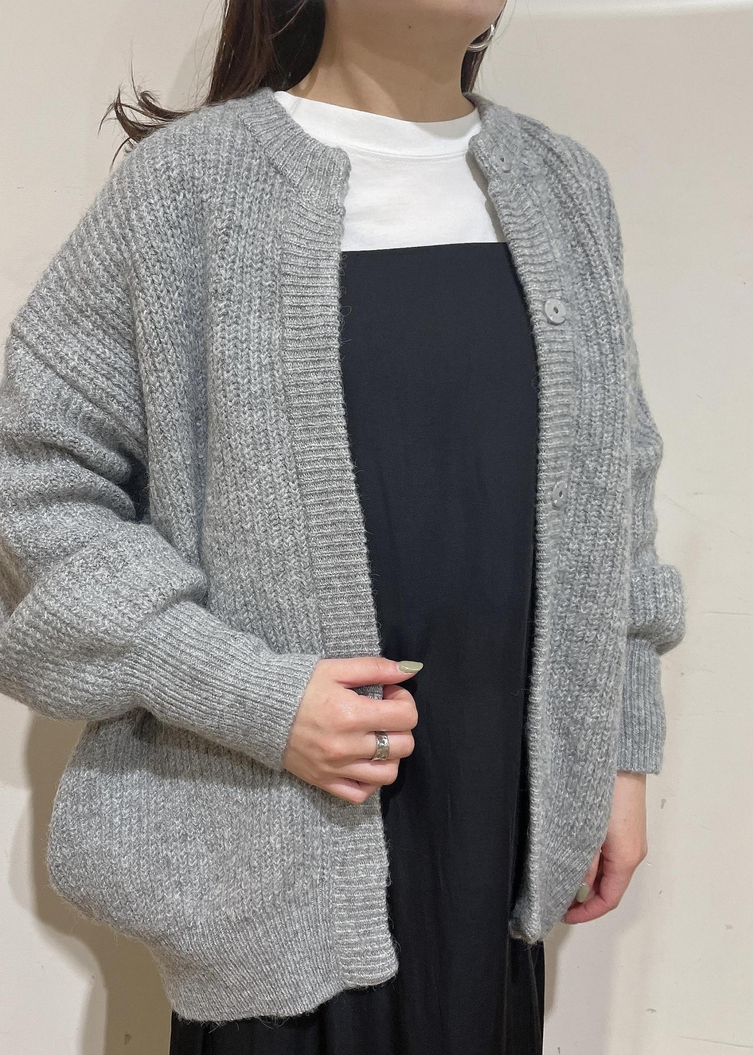 ゆるっとリラックスして着用できる、ロングヘアークルーカーディガン。