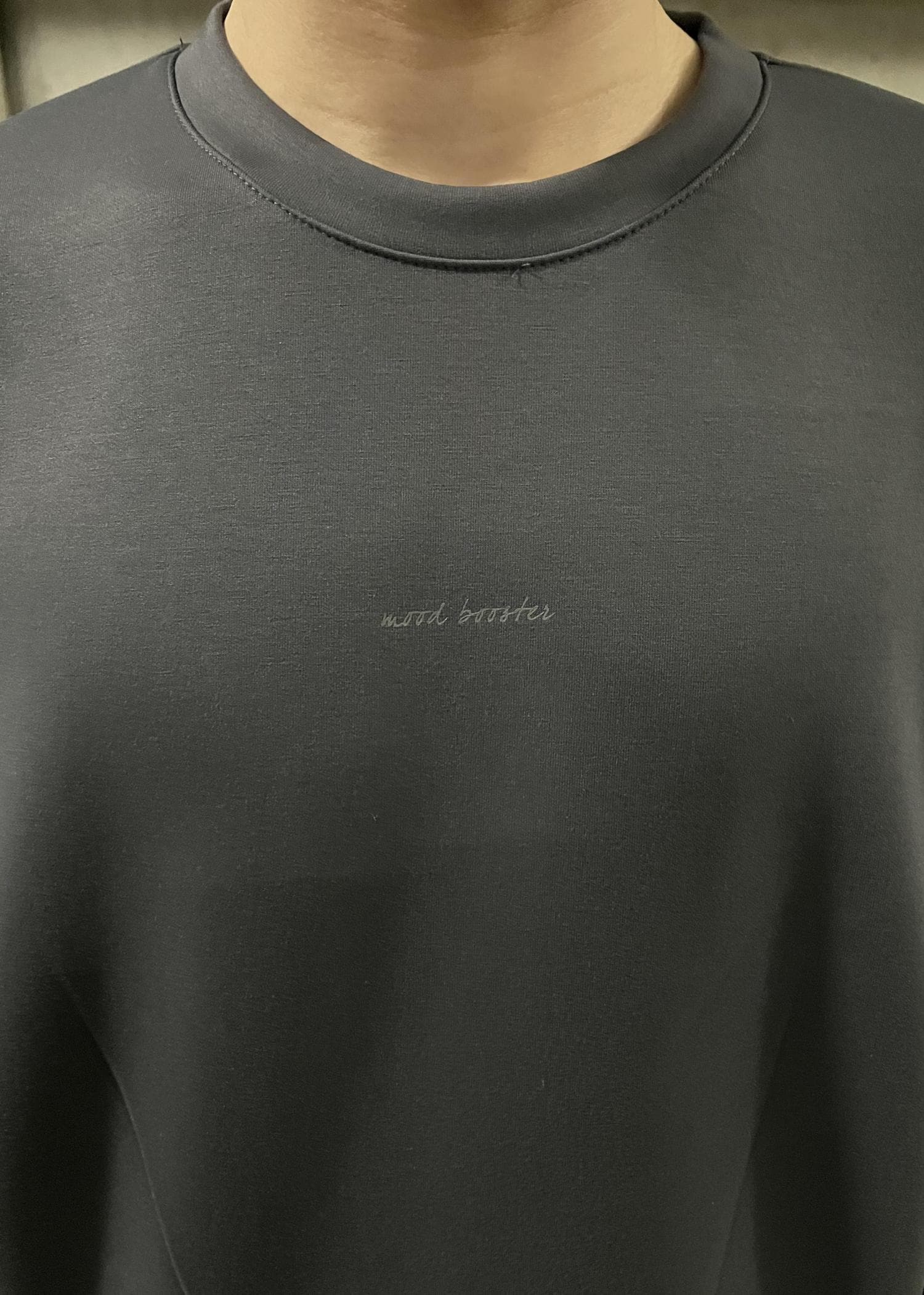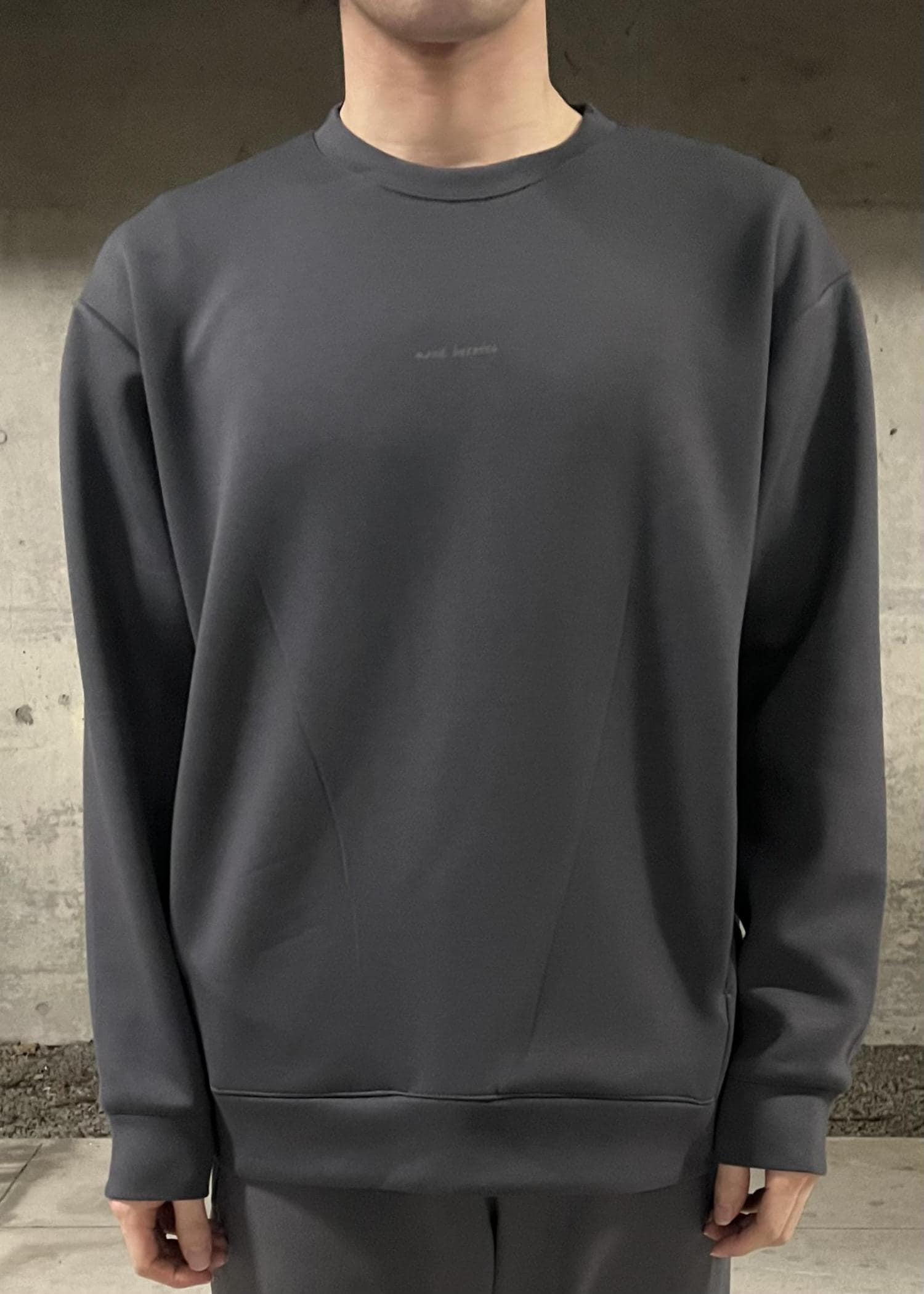 程よい厚みのスウェット。ダンボール素材で柔らかい着心地です。効ピル加工が施されており、毛玉になりにくい点も嬉しいポイント。シンプルなデザインで、1枚でもインナーとしても活躍するアイテムです!