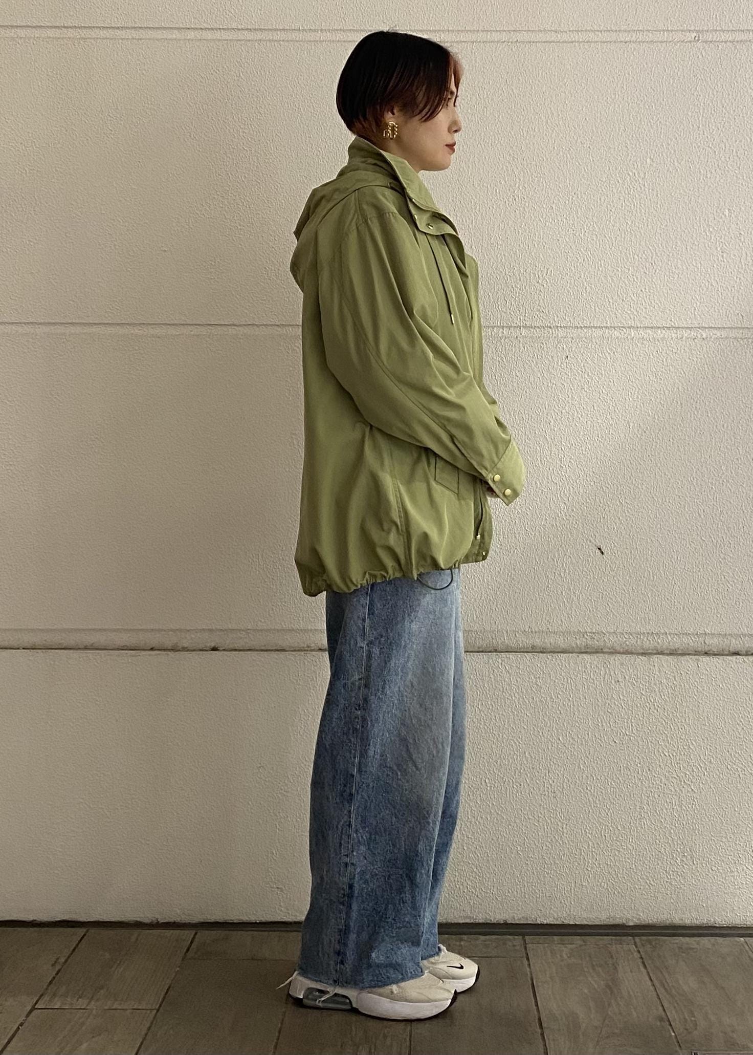 裾を絞っていただいて丸いシルエットにも出来、袖を捲っていただくと、程よい袖のボリュームが出せます。