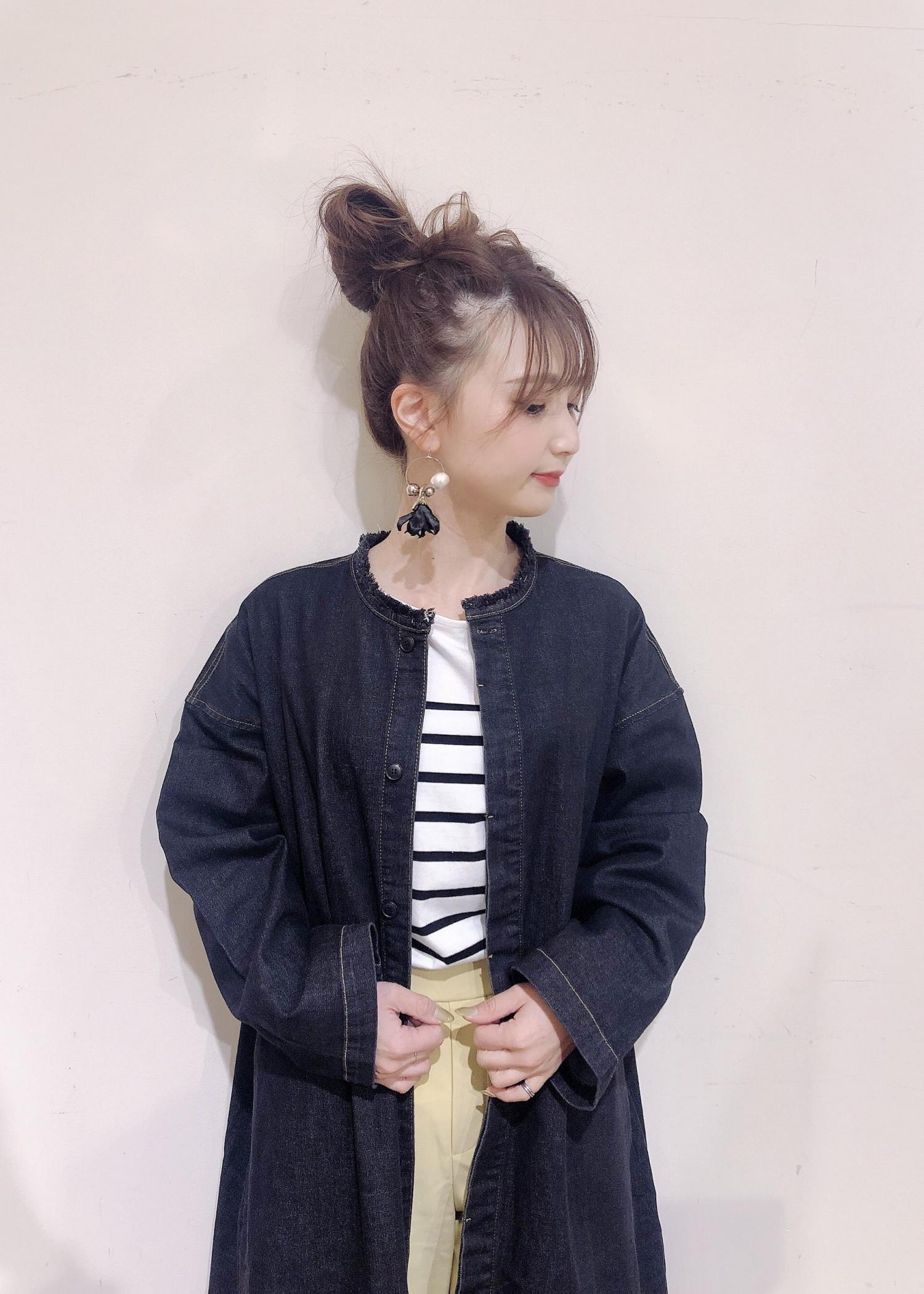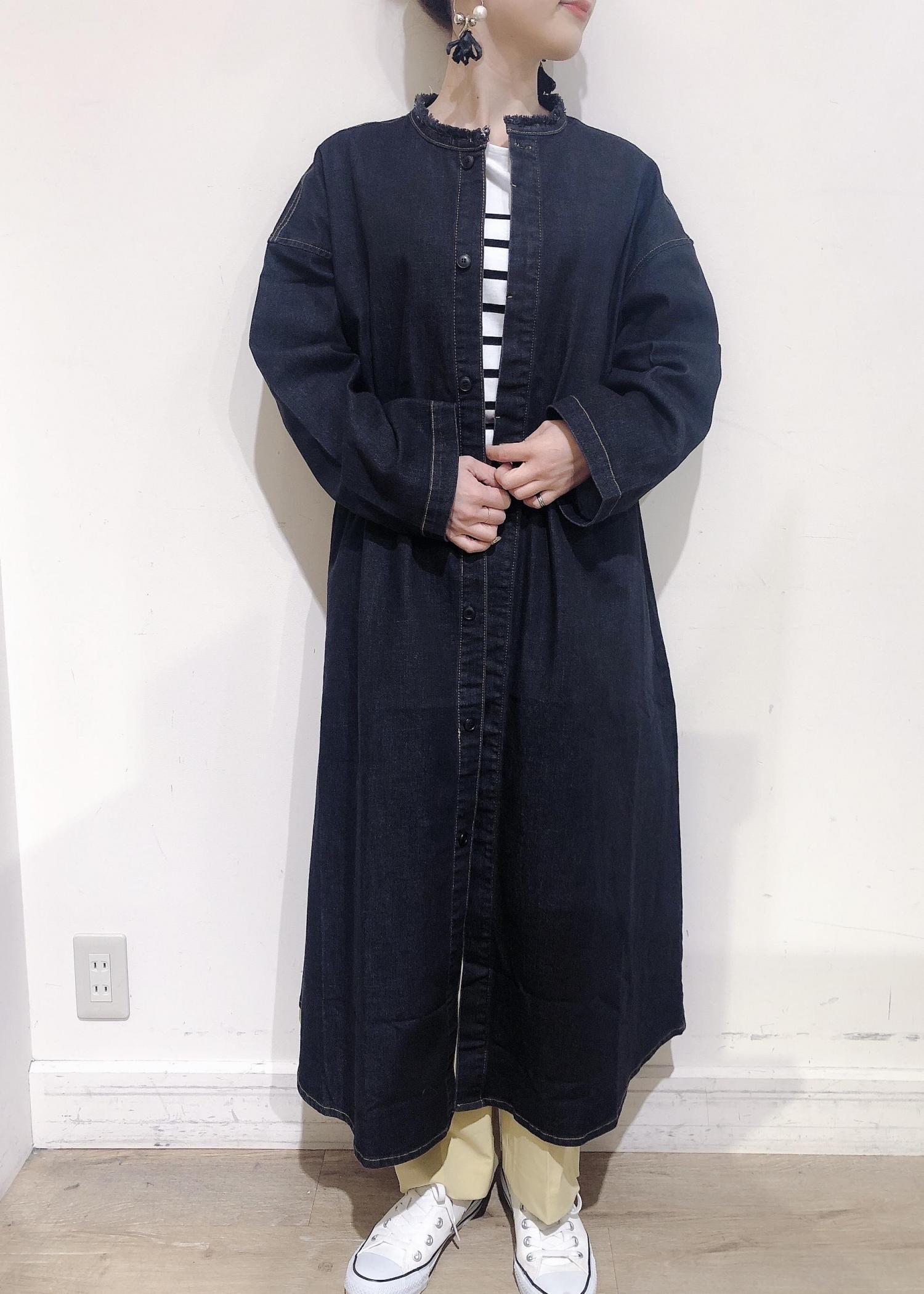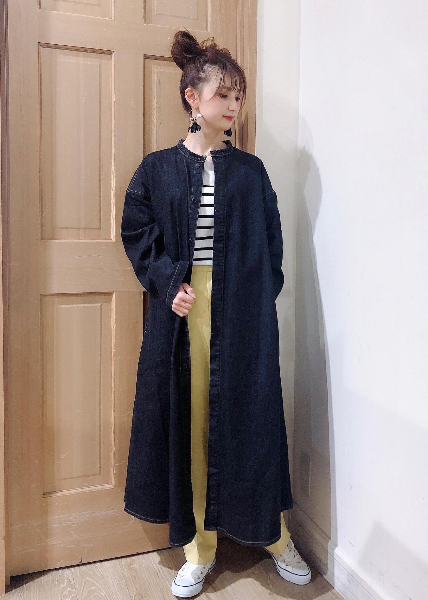 トレンドのデニムを羽織りとして着用したコーデにはロペピクニック おすすめのラク美カラーパンツを合わせてスッキリ!!明るくカジュアルな印象に◎