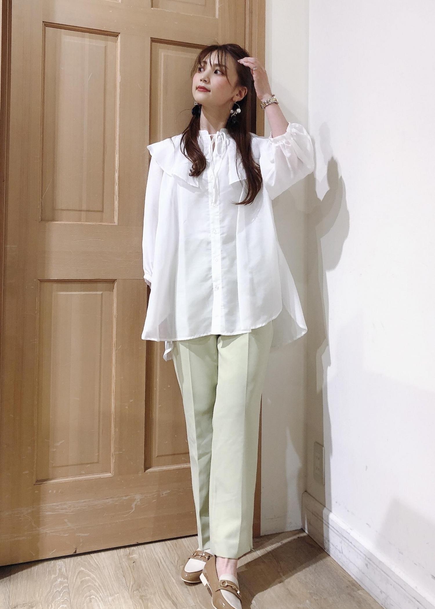 ケープ襟が可愛い♡ブラウス×ロペピクニック おすすめの低身長さん向けラク美カラーパンツのstylingです♪