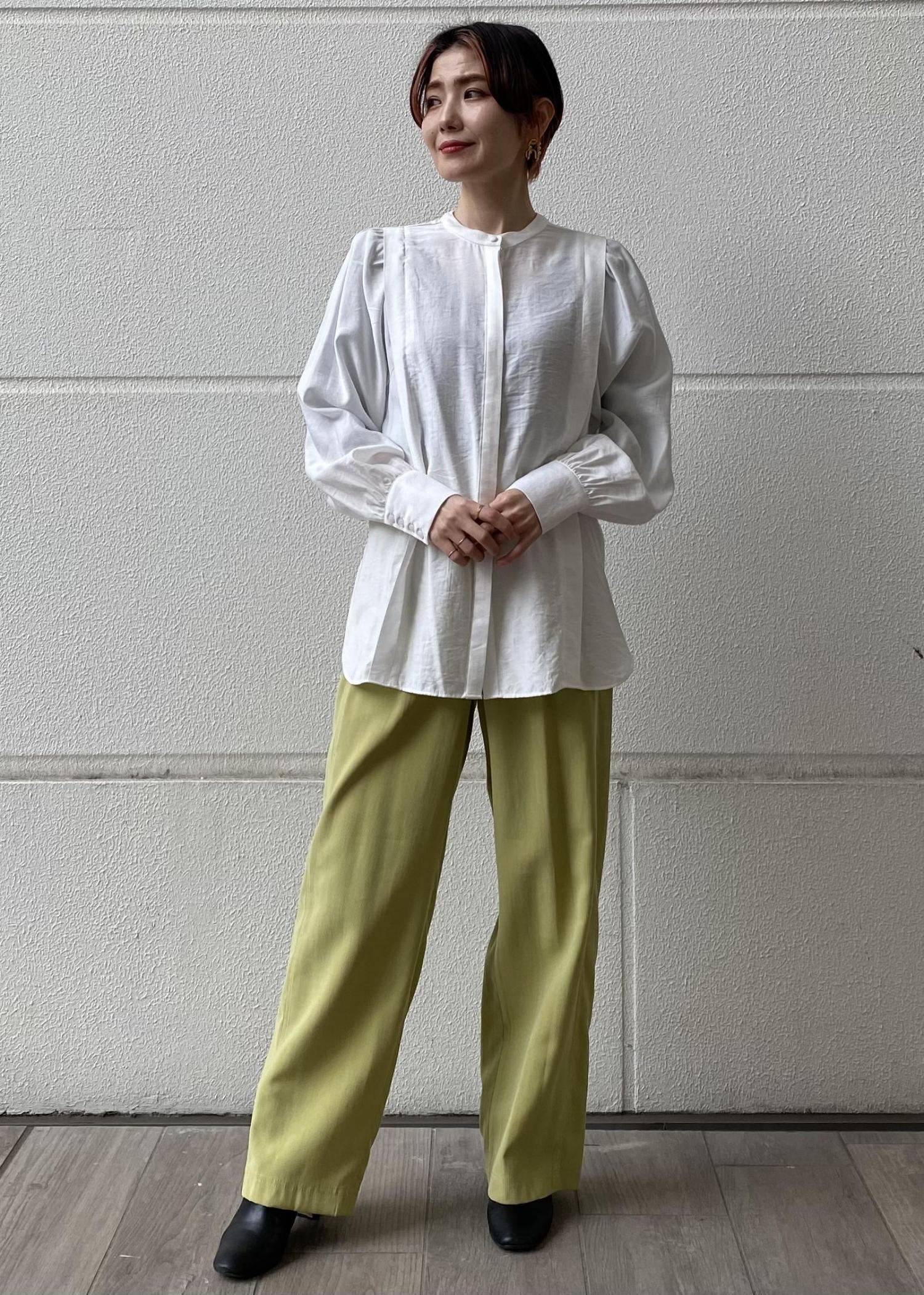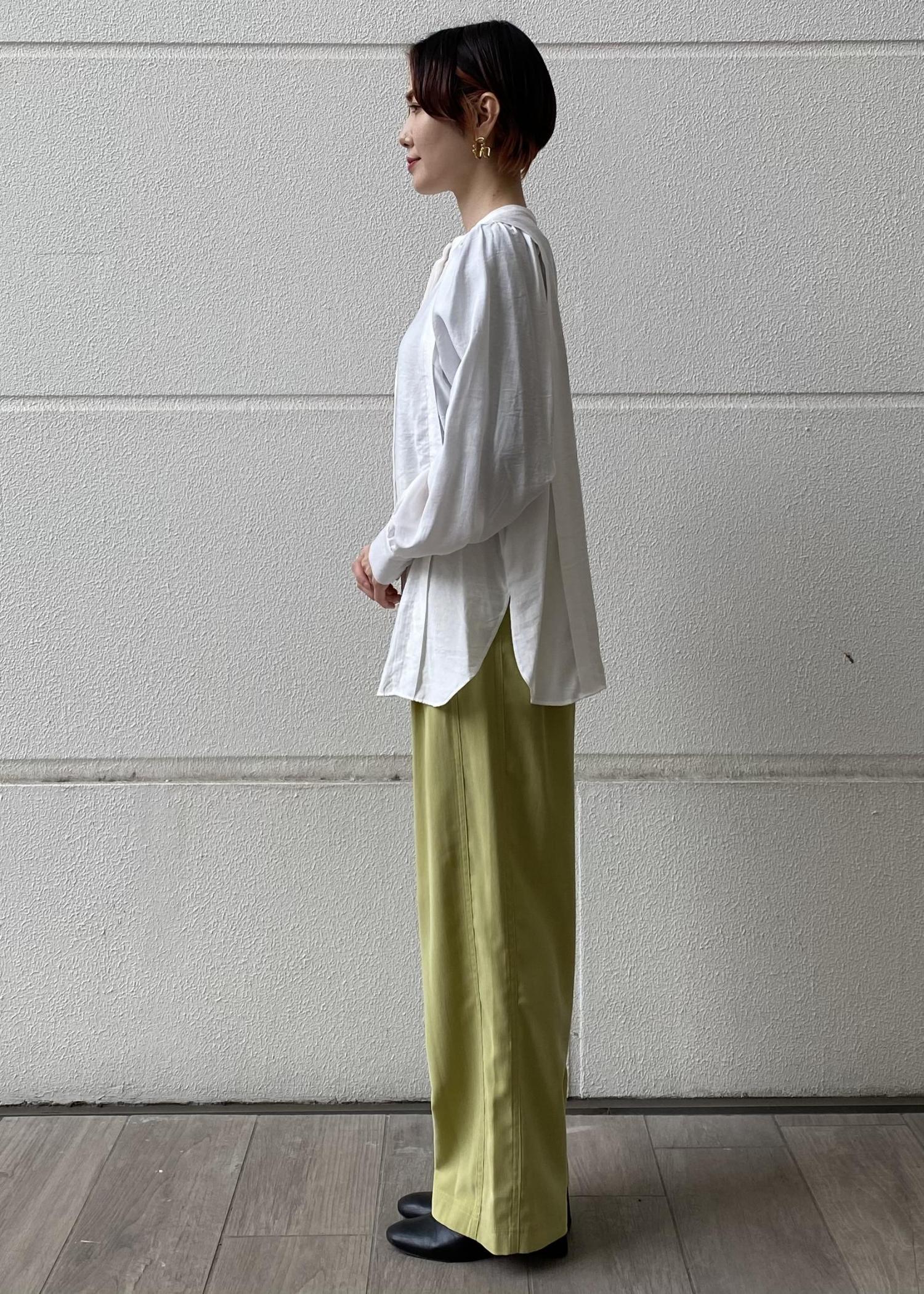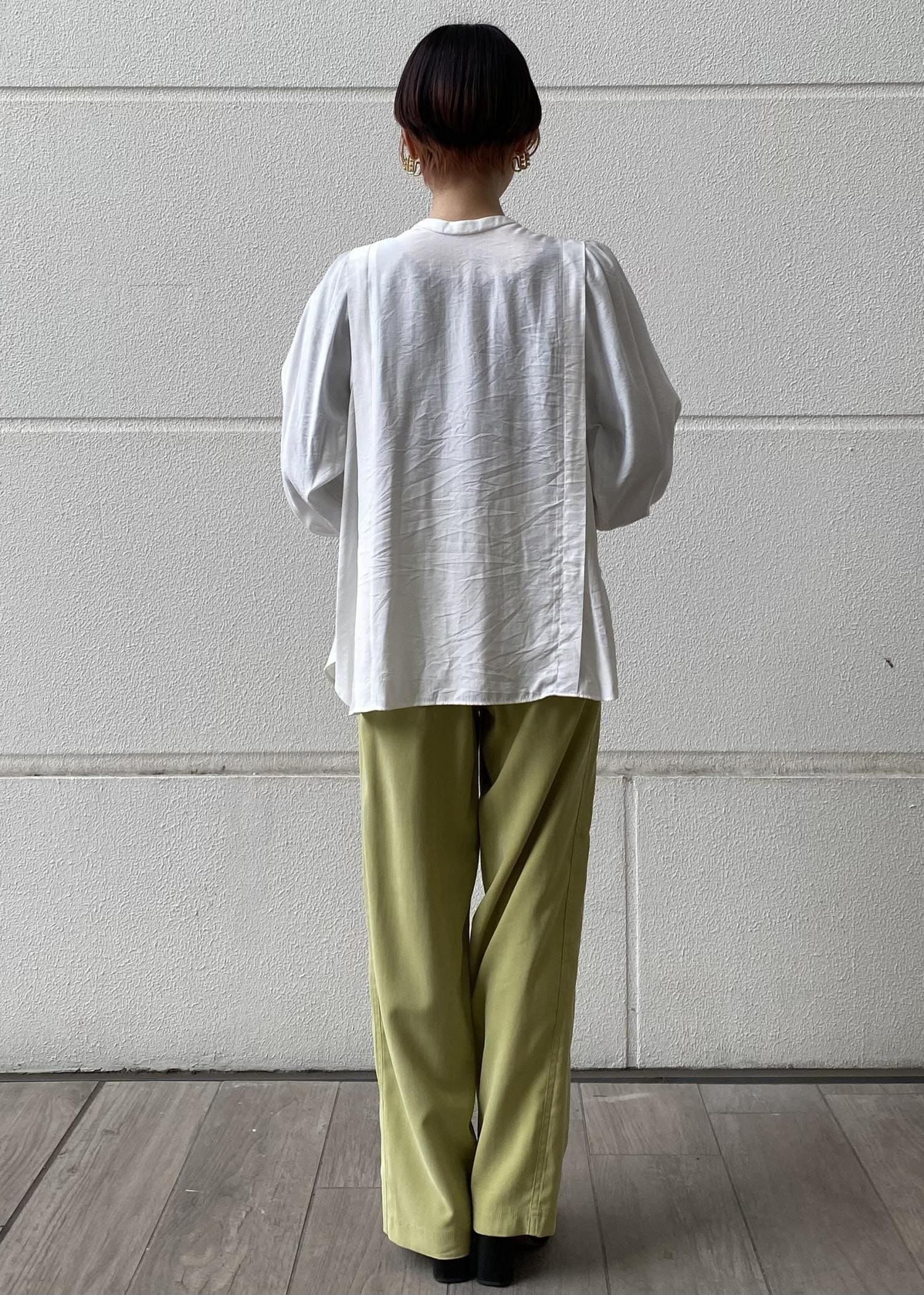 前後2WAYで大人な雰囲気が出せるブラウスはやや長めな丈感とボリューム袖がポイントです。