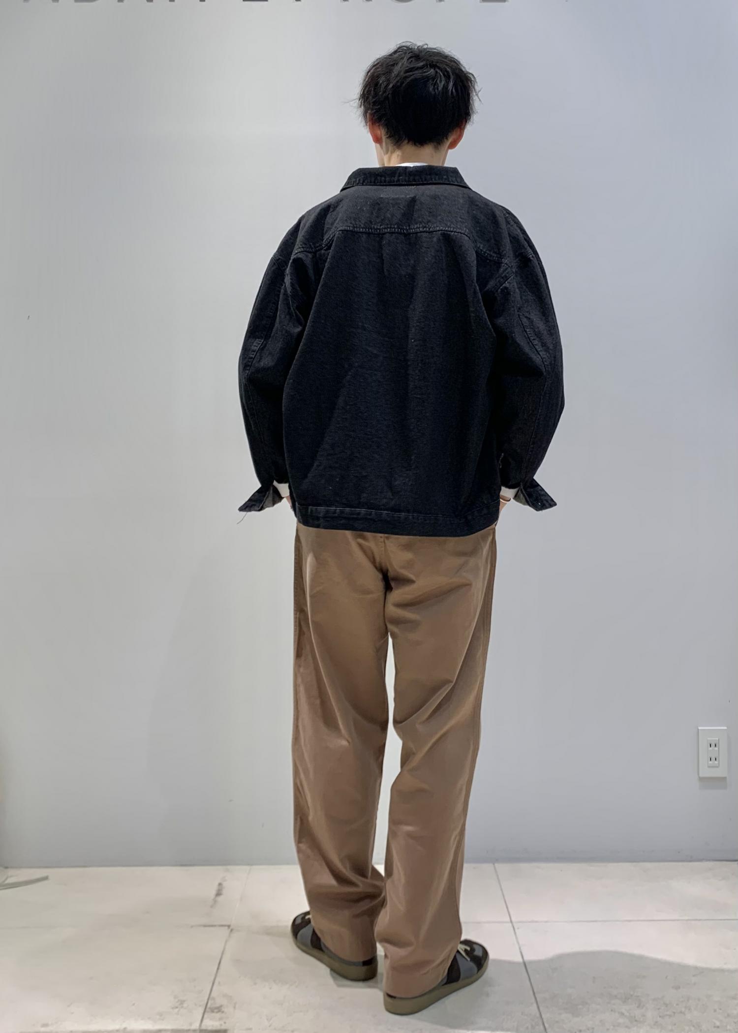 着用のアウターはトレンド感のあるデニムオーバージャケットです。