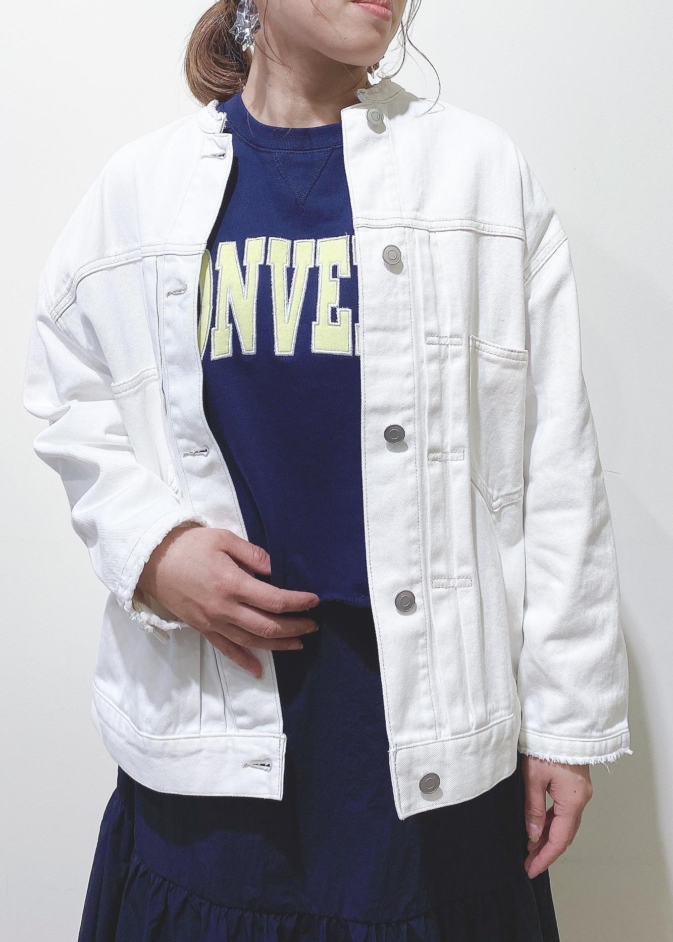 白のGジャンを羽織って、爽やかで清潔感のある大人コーデにしました!