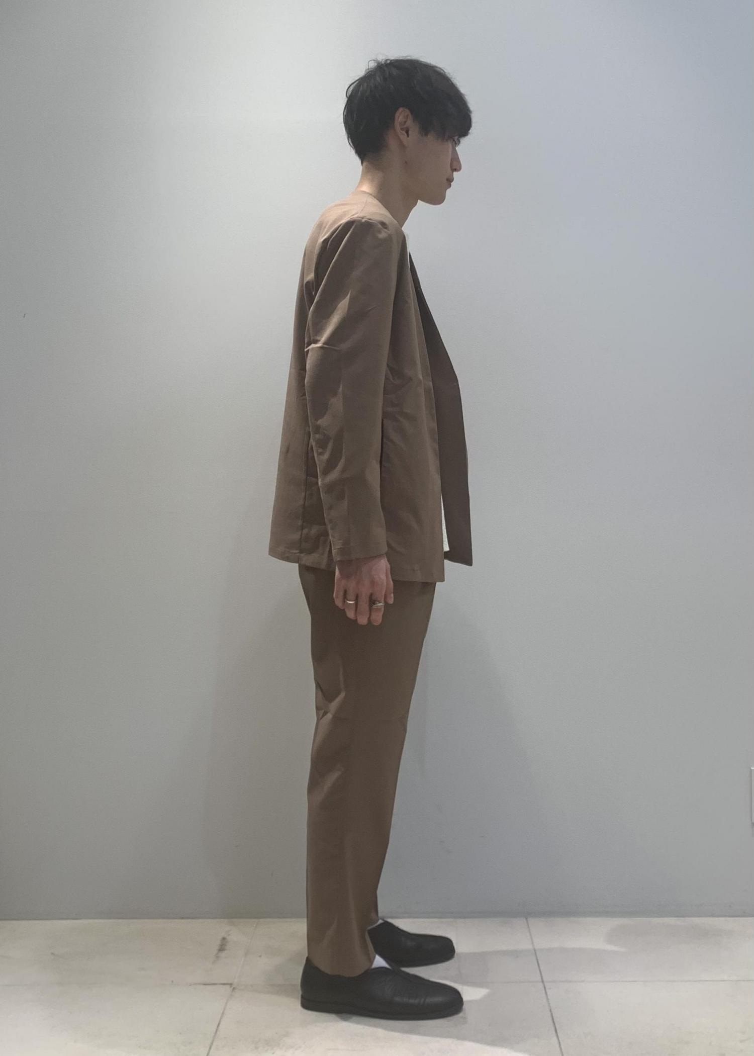 ボトムスも、イージーでありながら美シルエットなイージースラックス型で、くるぶしにかかる位のアンクル丈に設定することで、合わせる靴も選ばず、手持ちの靴で格好良く着られます。
