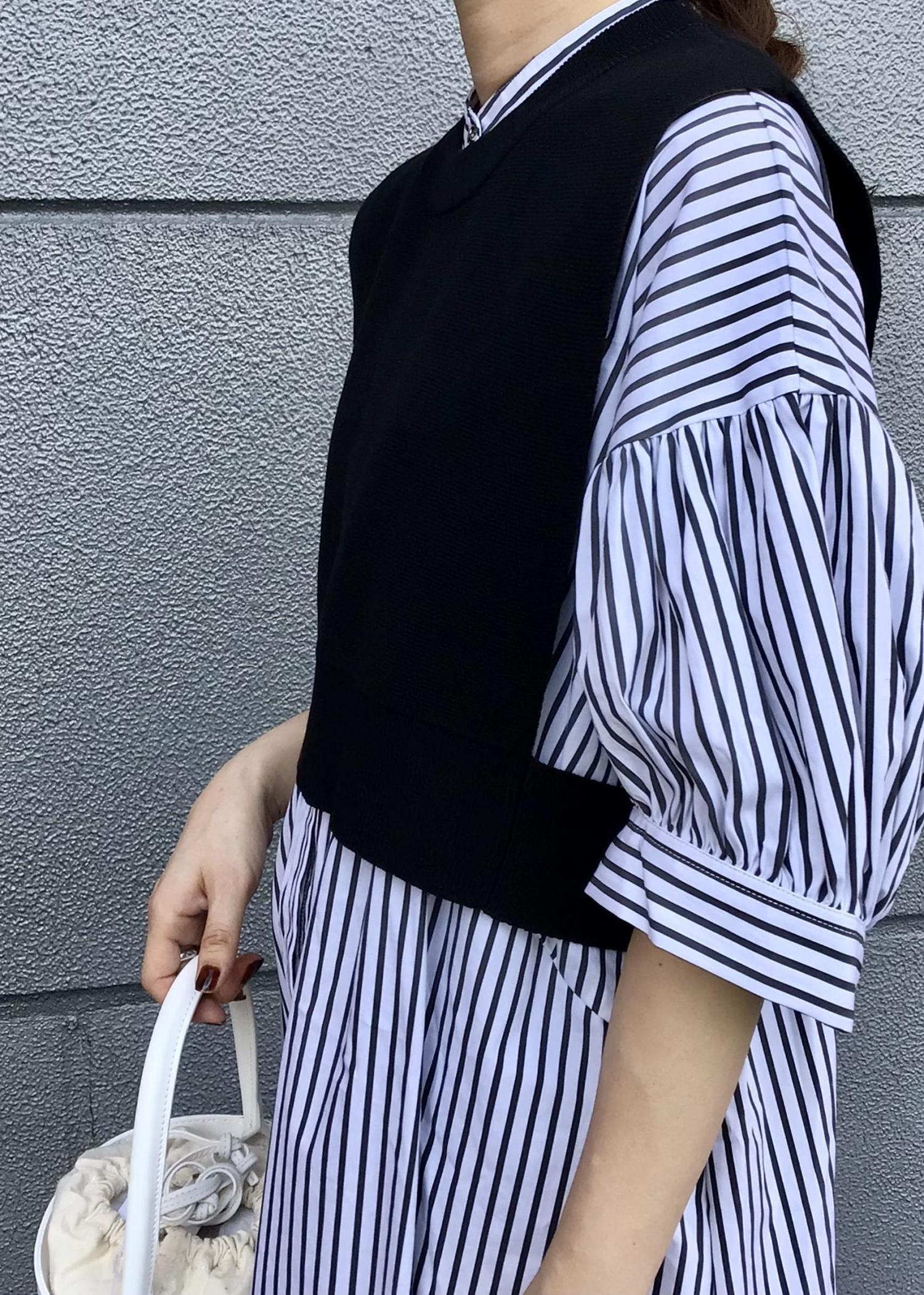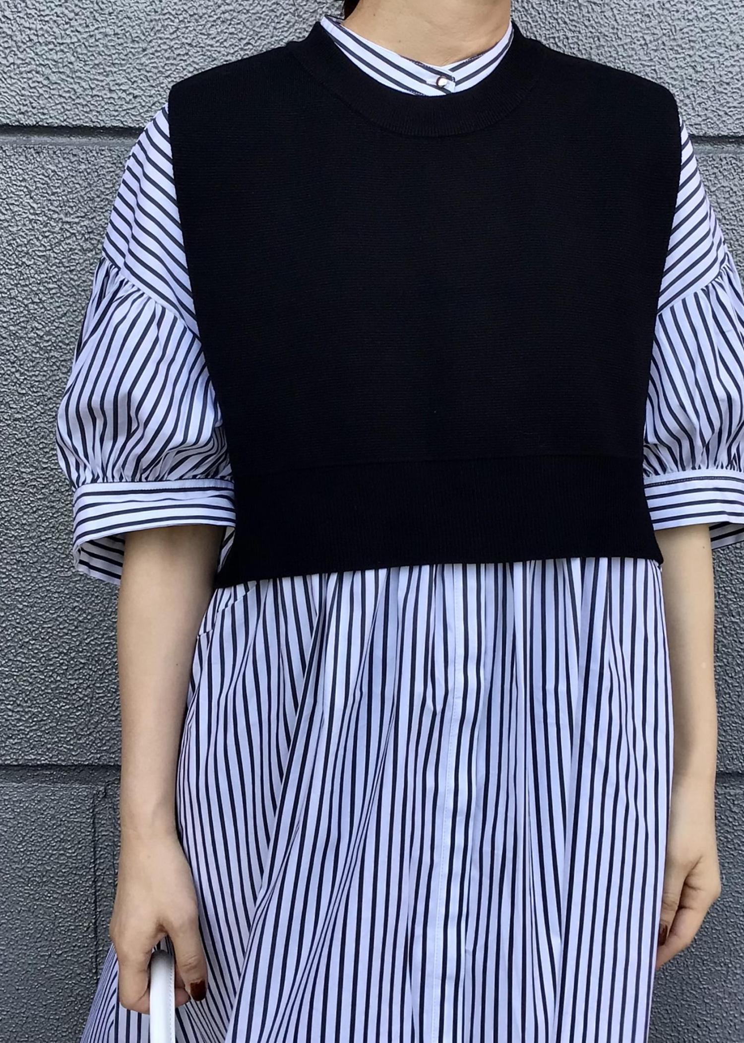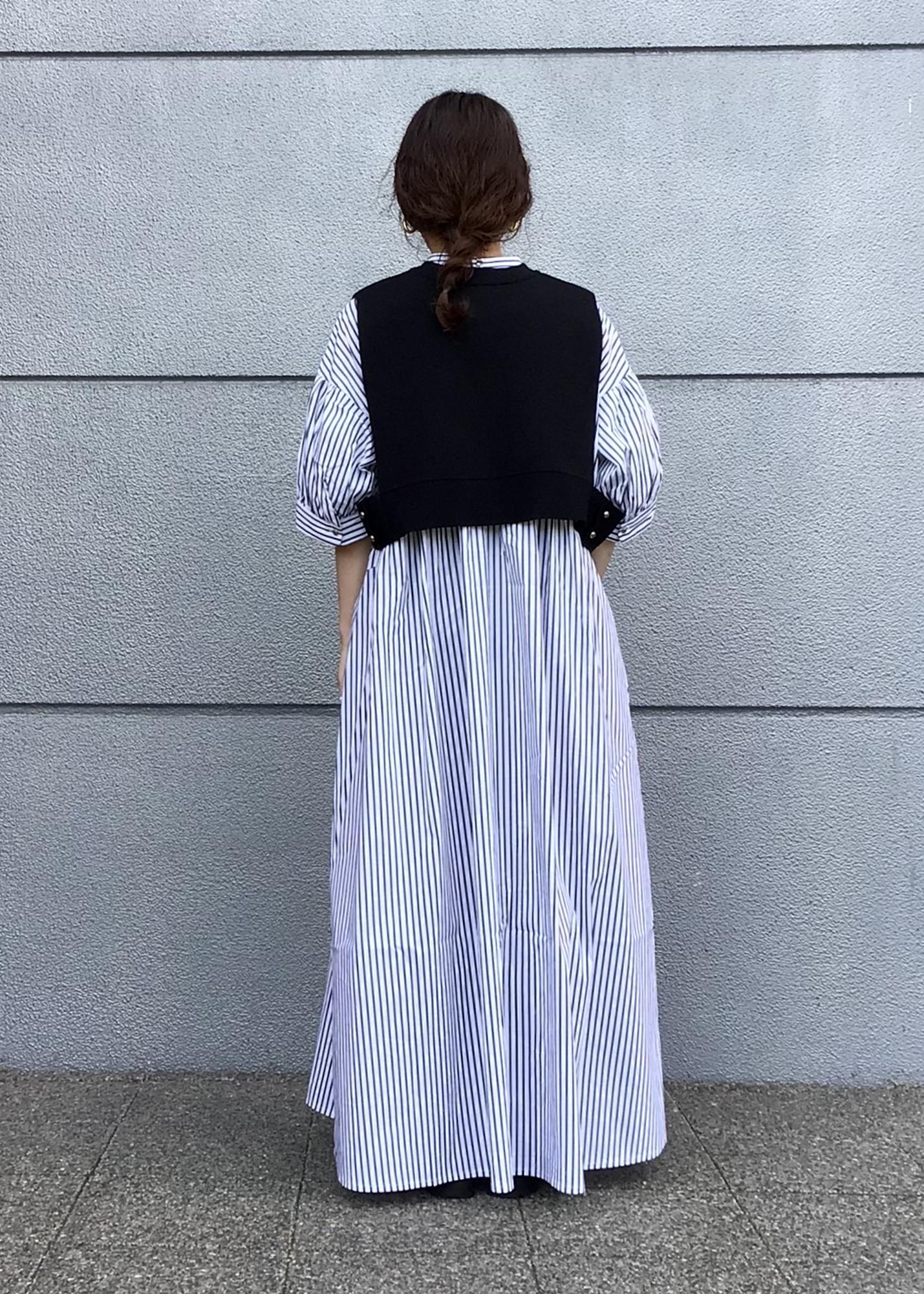 シャツワンピースとベストでコーディネートが完成するセットアップです。