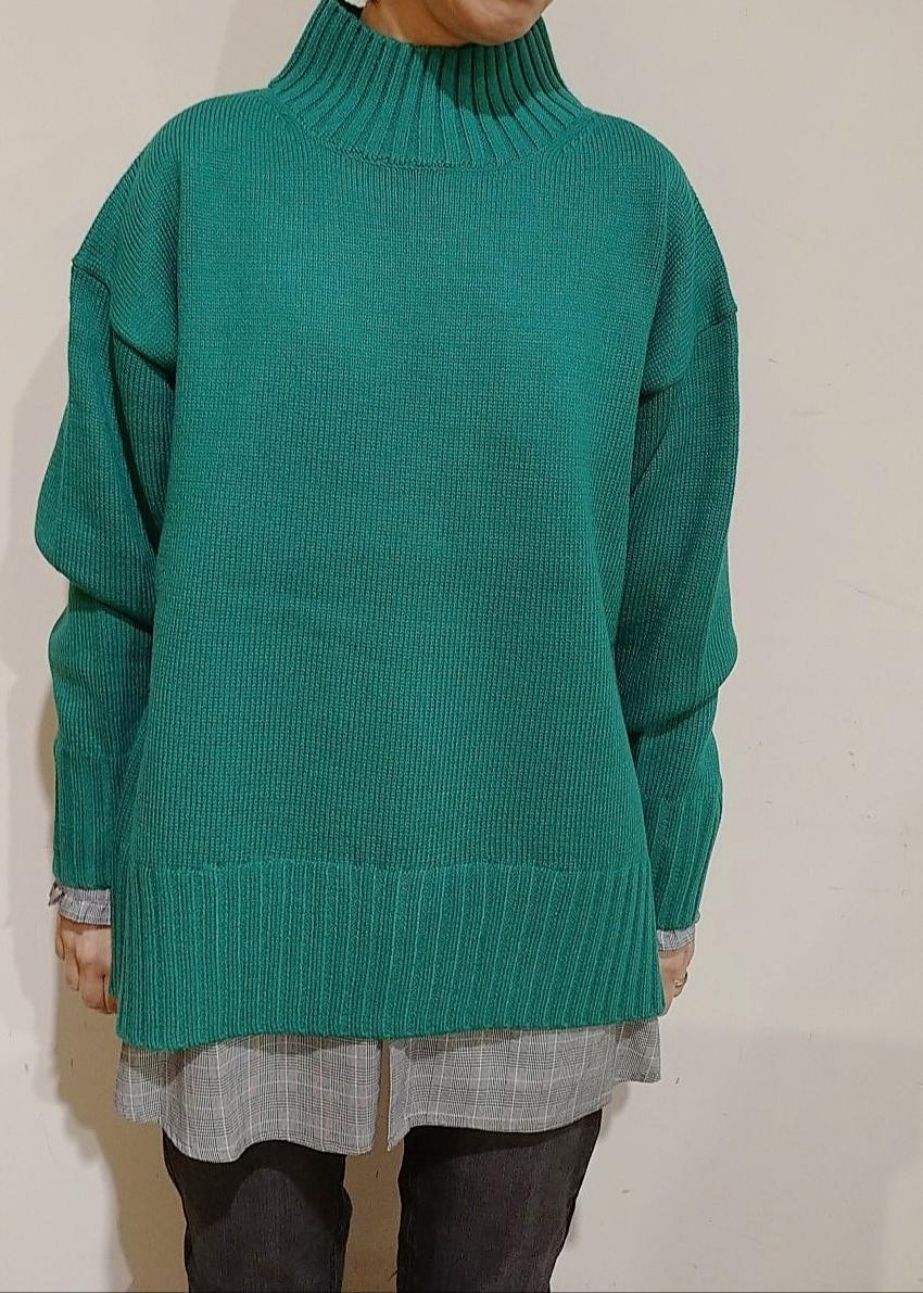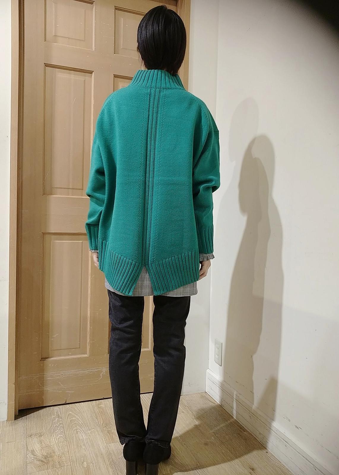 毎年大人気のバックスリットニットとチェックのシャツをレイヤードしました。今年はブラウスとのレイヤードスタイルがおすすめです♪