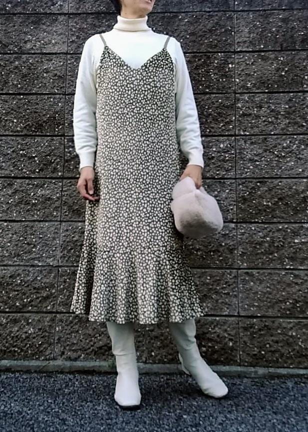 キャミワンピースにニットを重ね、ワンピースでも暖かくお洒落に見えるレイヤードスタイルです。ニットは、ハーフジップニットでセーラーカラーがポイントです。サイドスリット入りなので腰回りもスッキリ見え、ワイドパンツやマーメイドスカートとの相性もバッチリ◎。1枚でトレンドのスタイルが楽しめます。