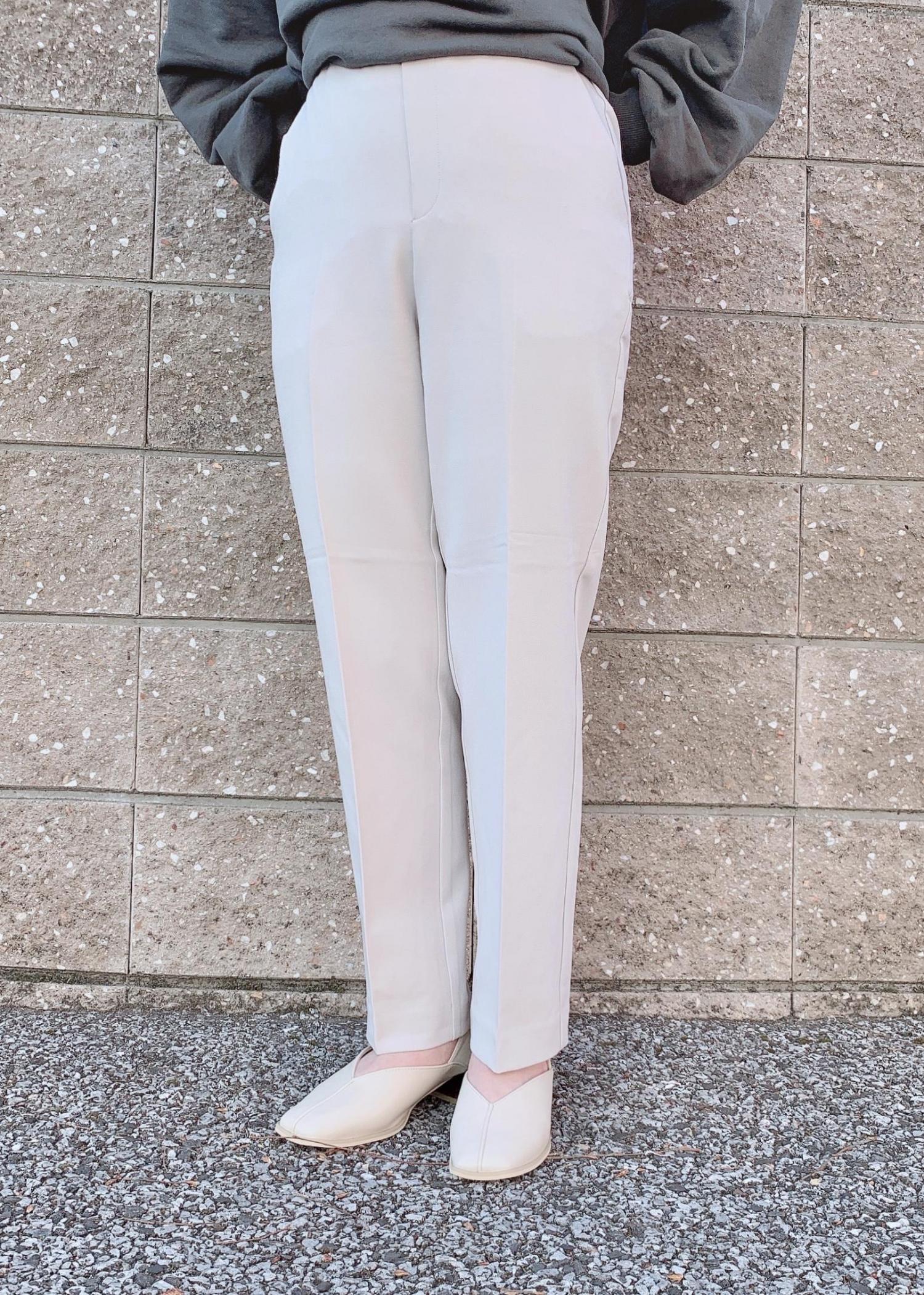 ウエスト後側がゴムで締め付け感がなく、着脱しやすい適度なゆとりがあるストレートシルエットです。