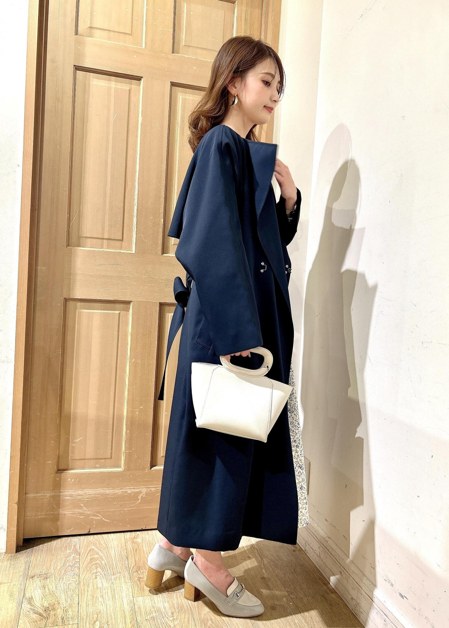 インナーにはレースキャミソールやタンクトップと合わせて、アウターはネイビーのコートを合わせた、キレイめコートはおすすめです⭐︎