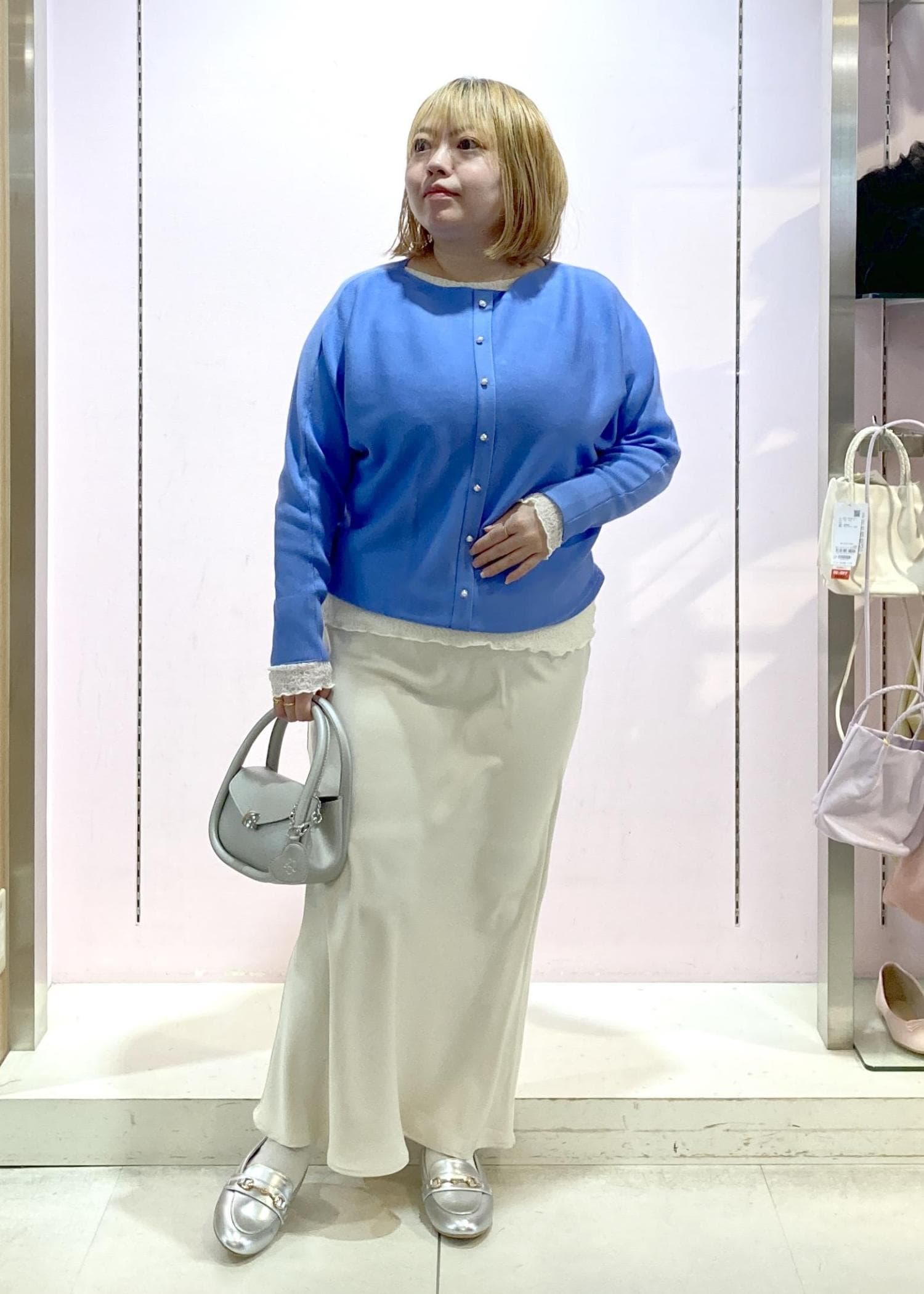 カーディガンはミックスカラーな事と、大きめボタンがかわいいデザイン◎