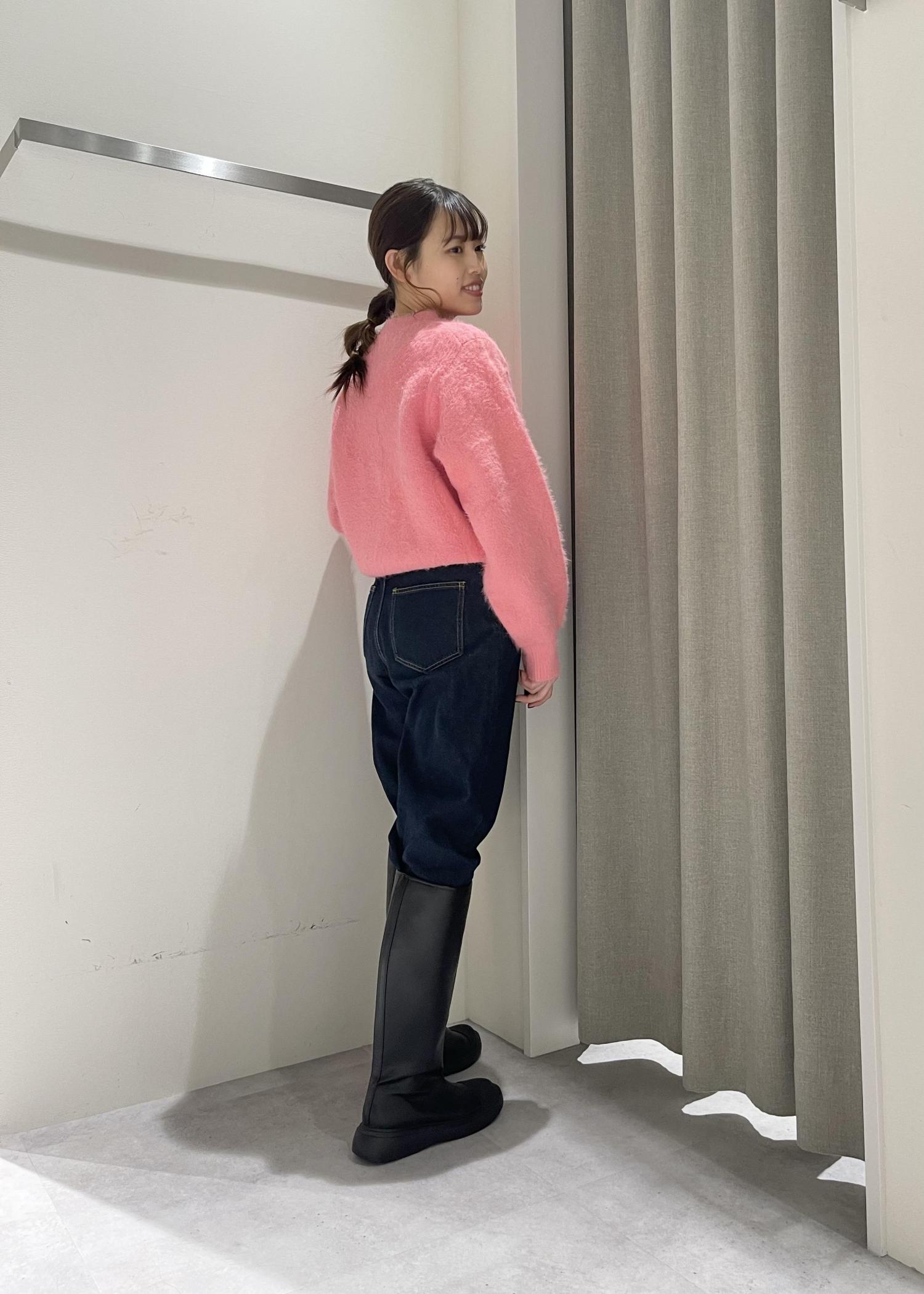 ピンクのふわふわニットをあえてカジュアルでまとめました!!