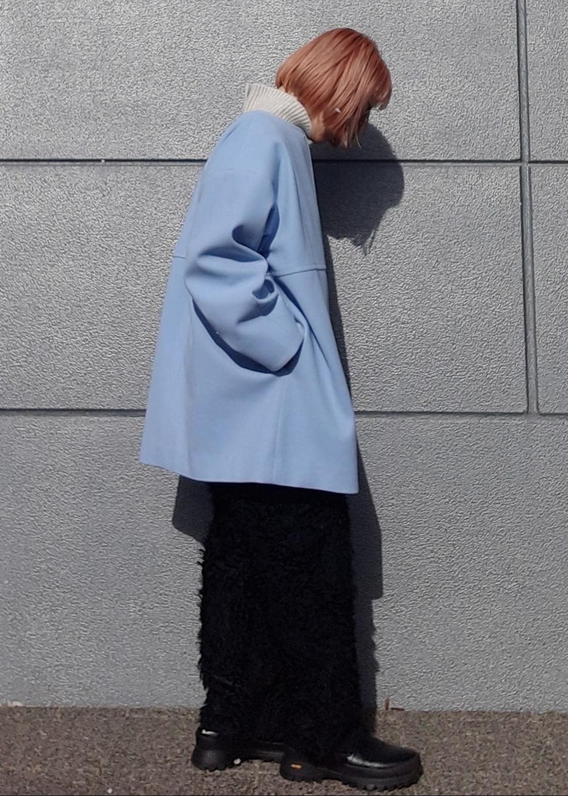 ノーカラーのシンプルなデザインなので、タートルネックのインナーと合わせてもスッキリ見えするのが嬉しいですね。