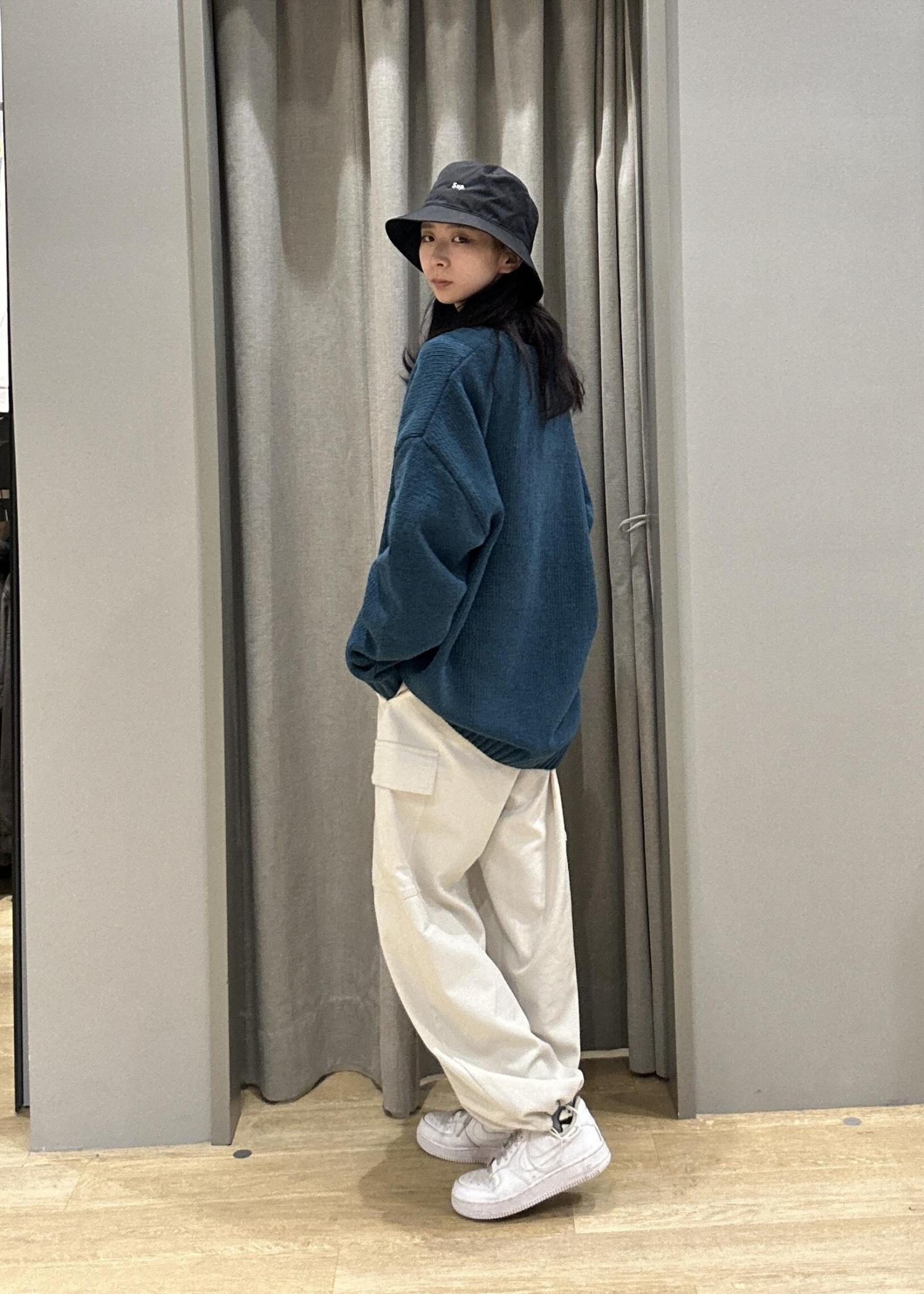 着心地のいいもっちりとしたカーディガンに カーゴパンツを合わせたカジュアルなコーデです