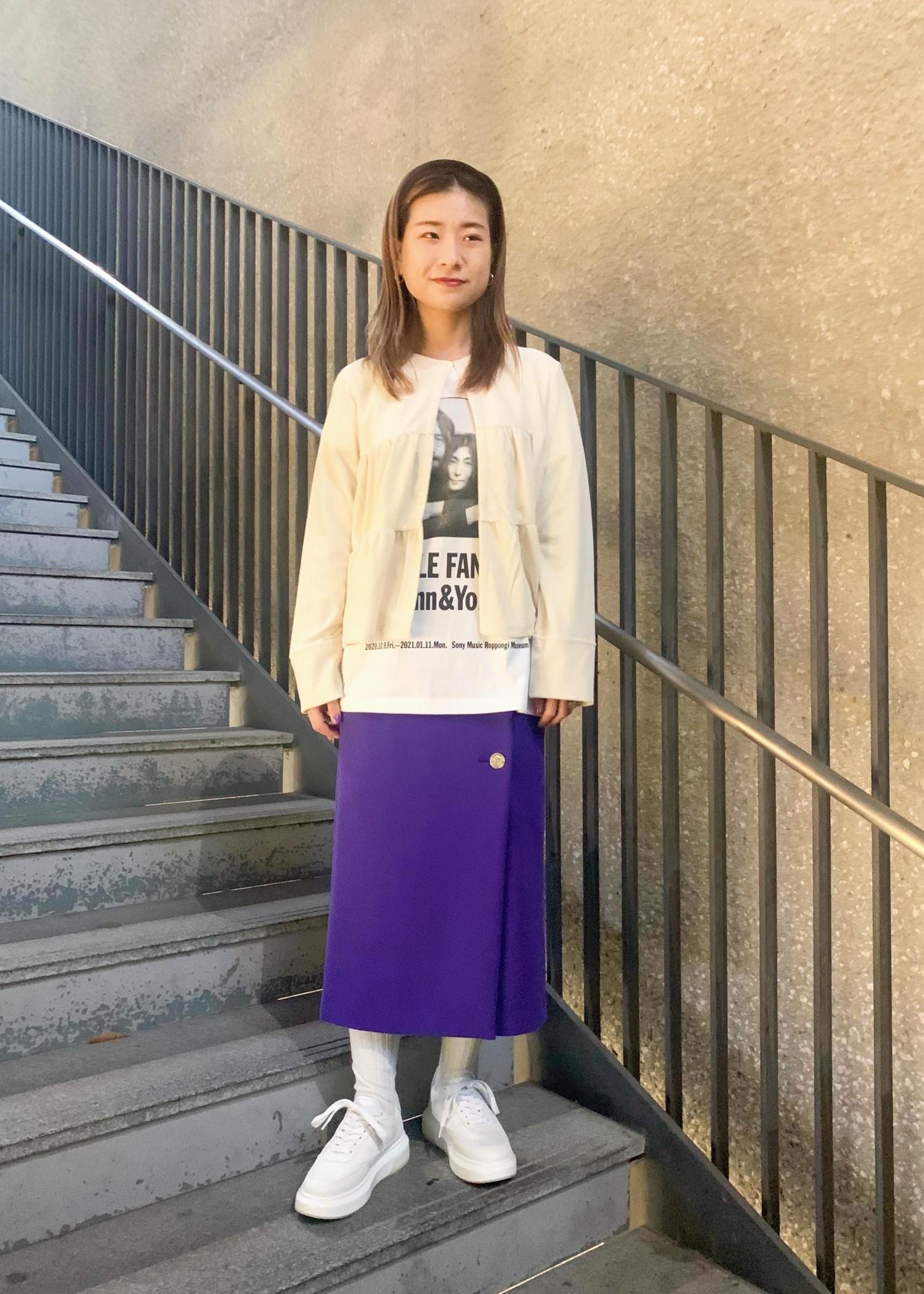 ワイドパンツなどと合わせたり、オーバーサイズのアウターを上に着るとレイヤードスタイルになり、オススメです。