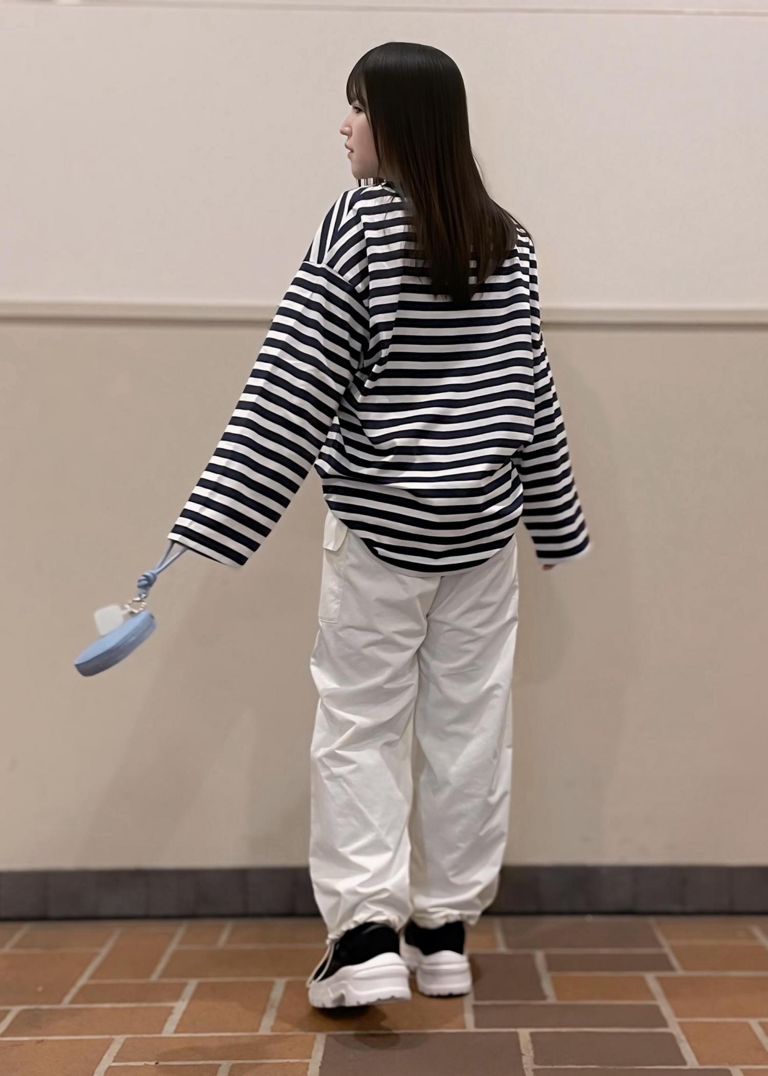 トップスはオーバーサイズで着心地が良く、後ろをアウトにすることでヒップが隠れます♡
