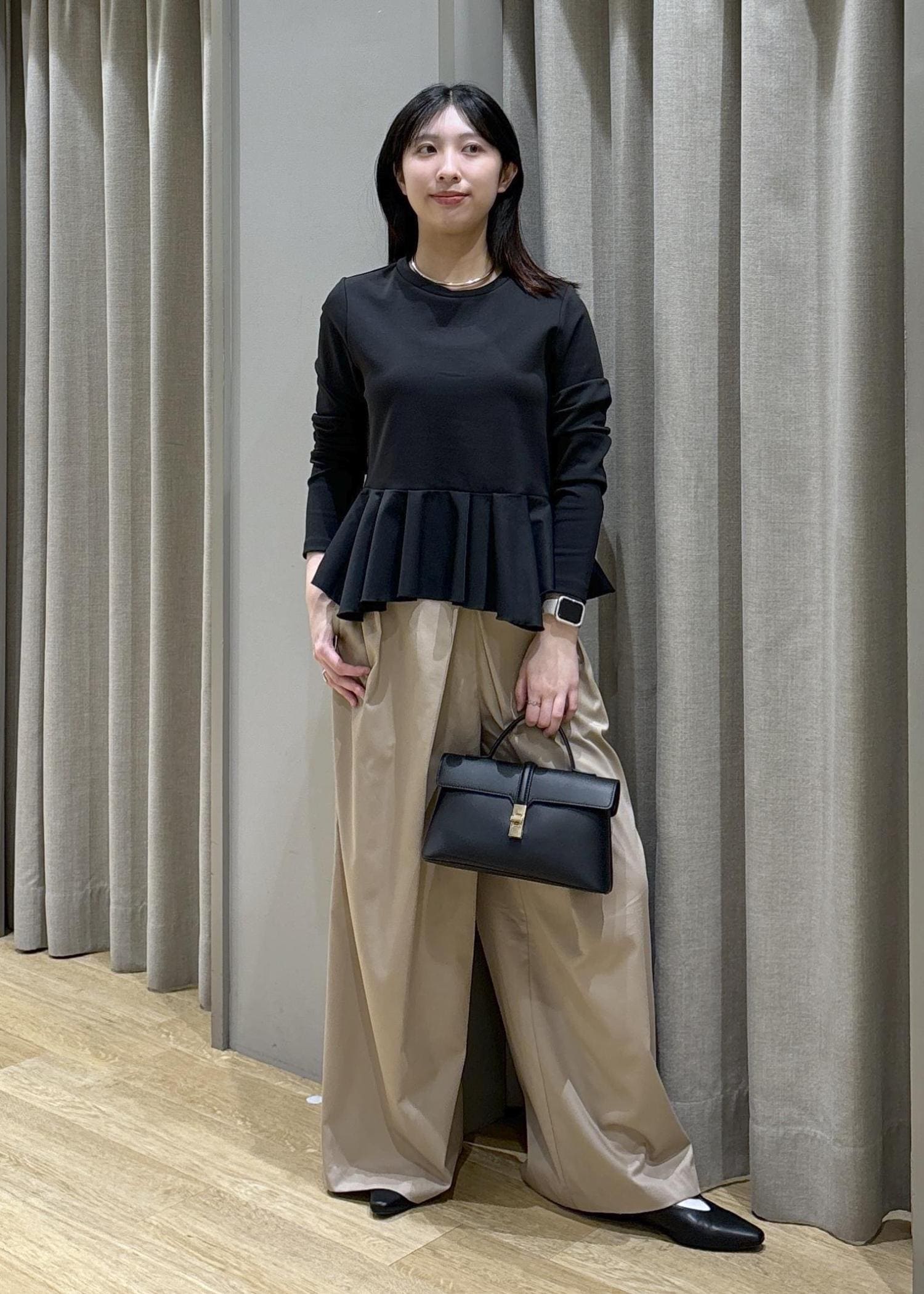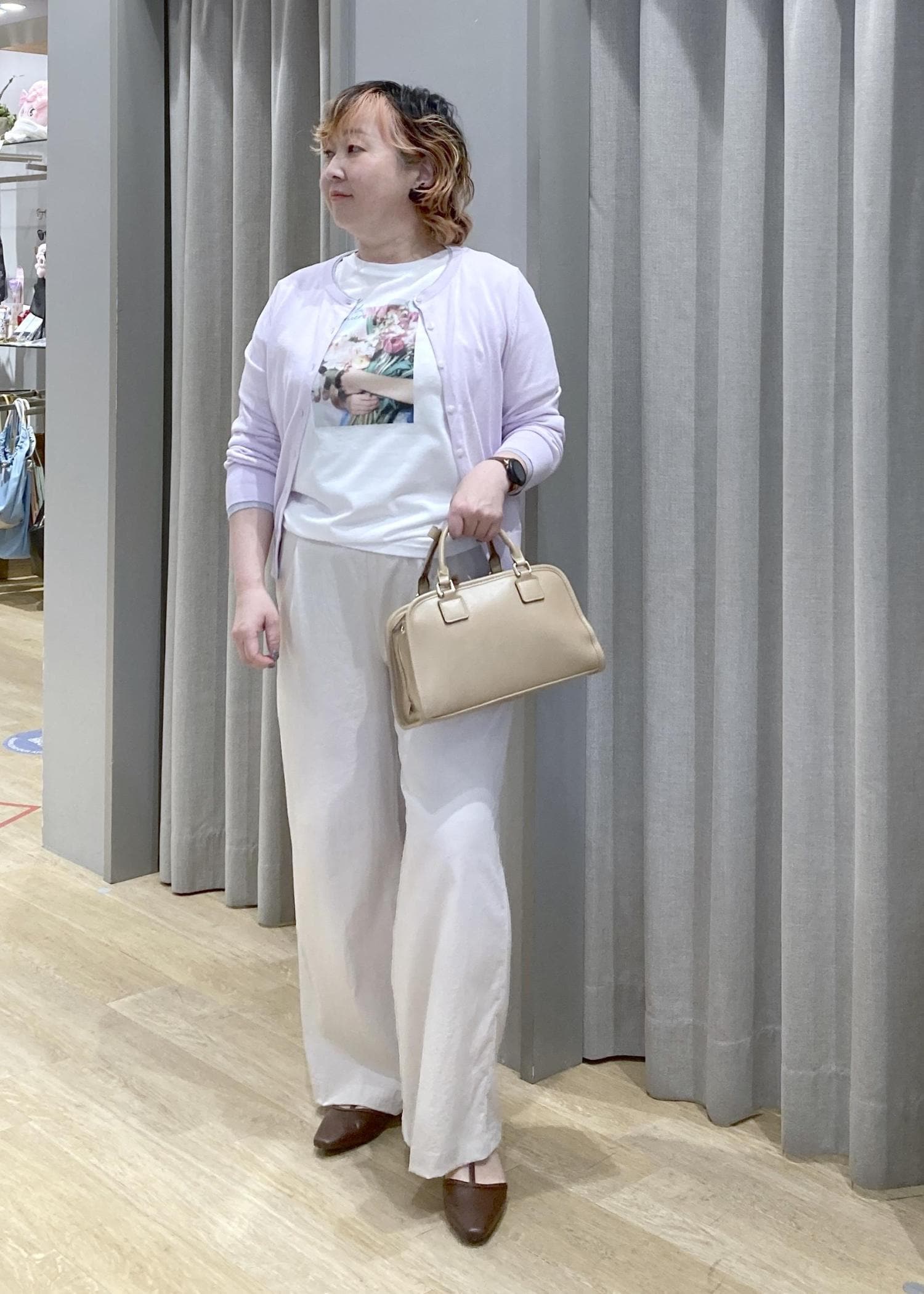 ベージュのオフィスカジュアルコーデ