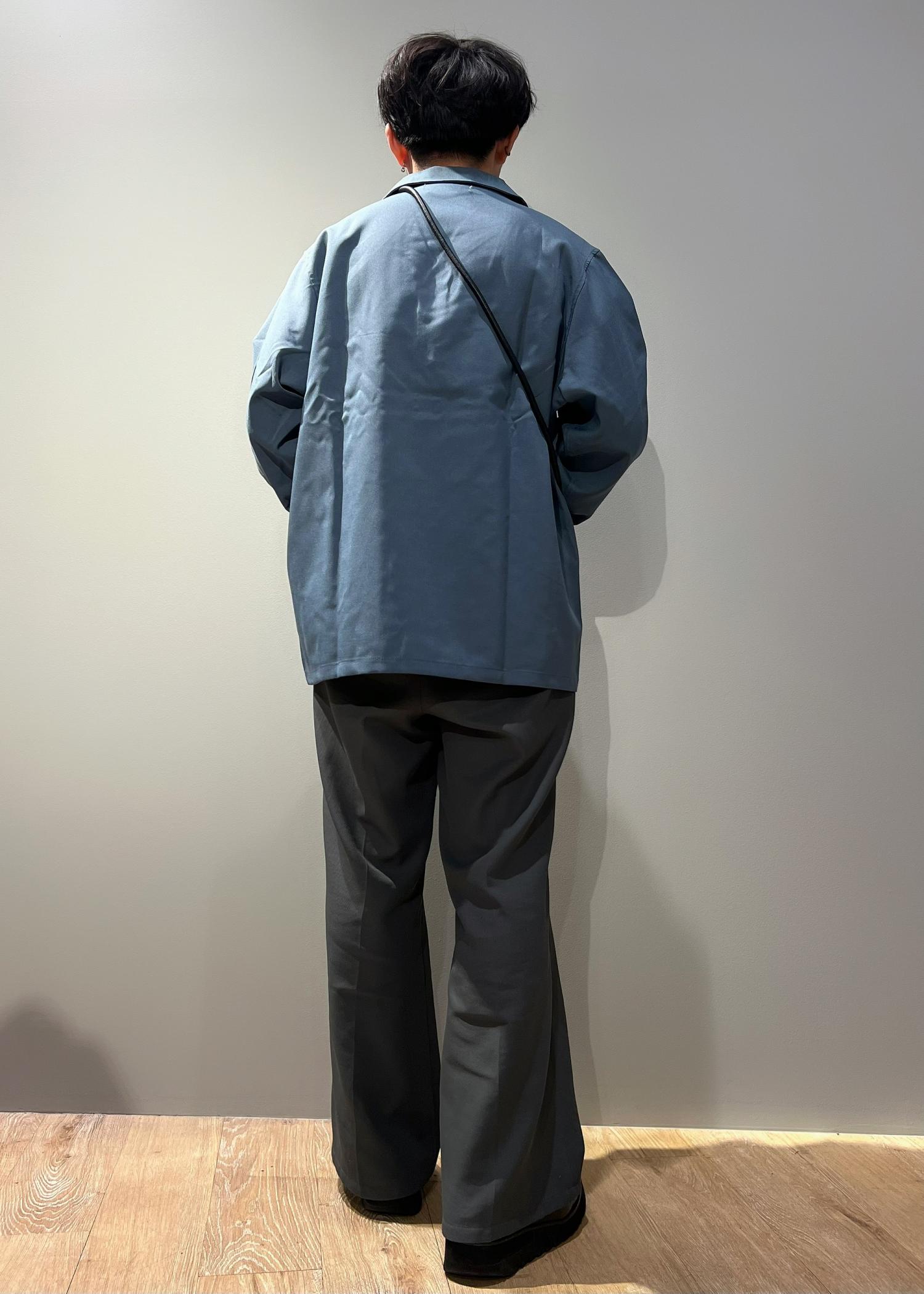 今回はエコストリッチCPOシャツを使ったコーデです。目を引くカラーなので、ボタンを閉めた1枚な見え方にしてみました。シンプルなので、柄のインナーや小物と合わせるとトレンド感も出せます!