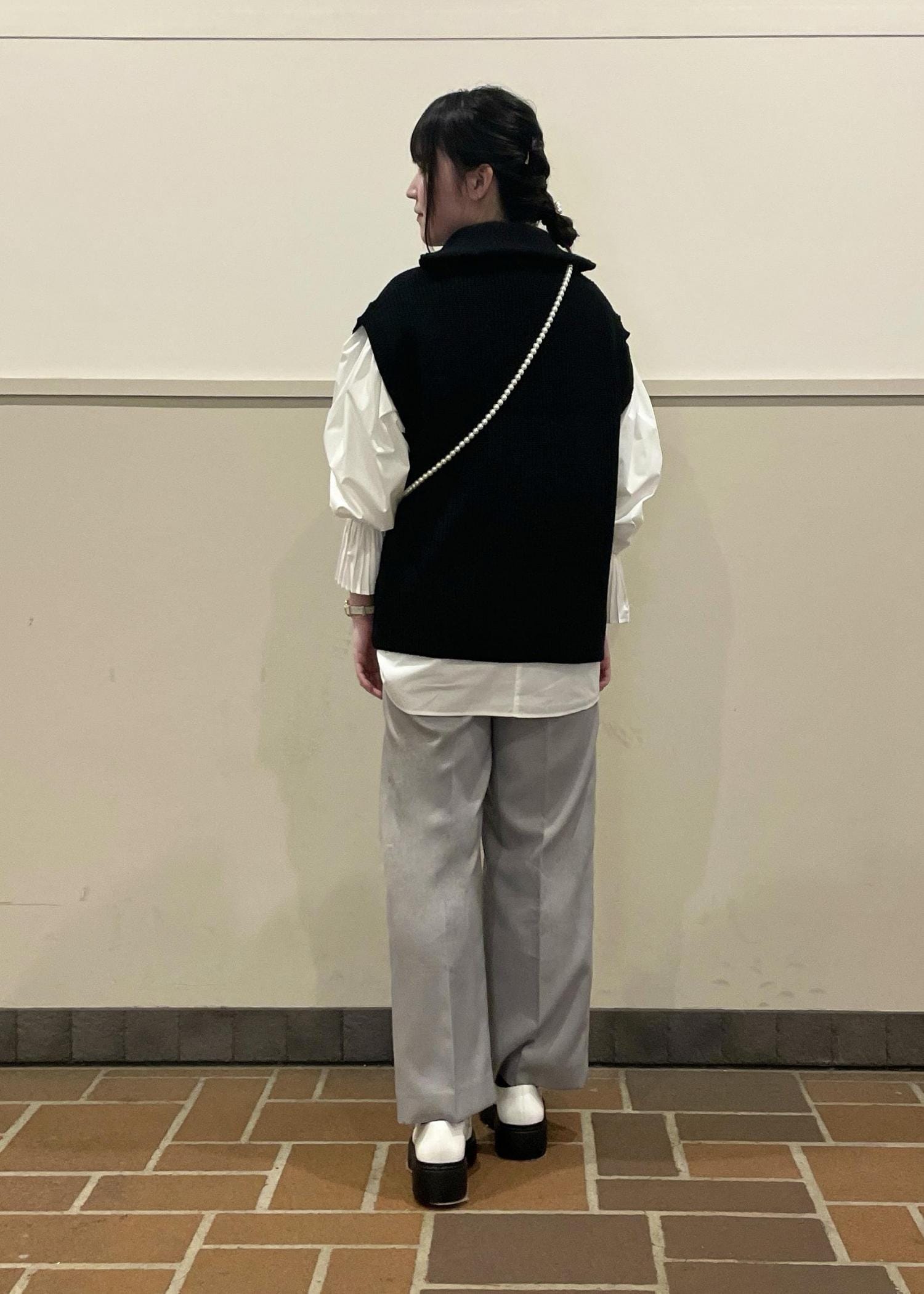 ゆとりのあるニット素材のベストに袖のプリーツが特徴的なシャツを合わせました!