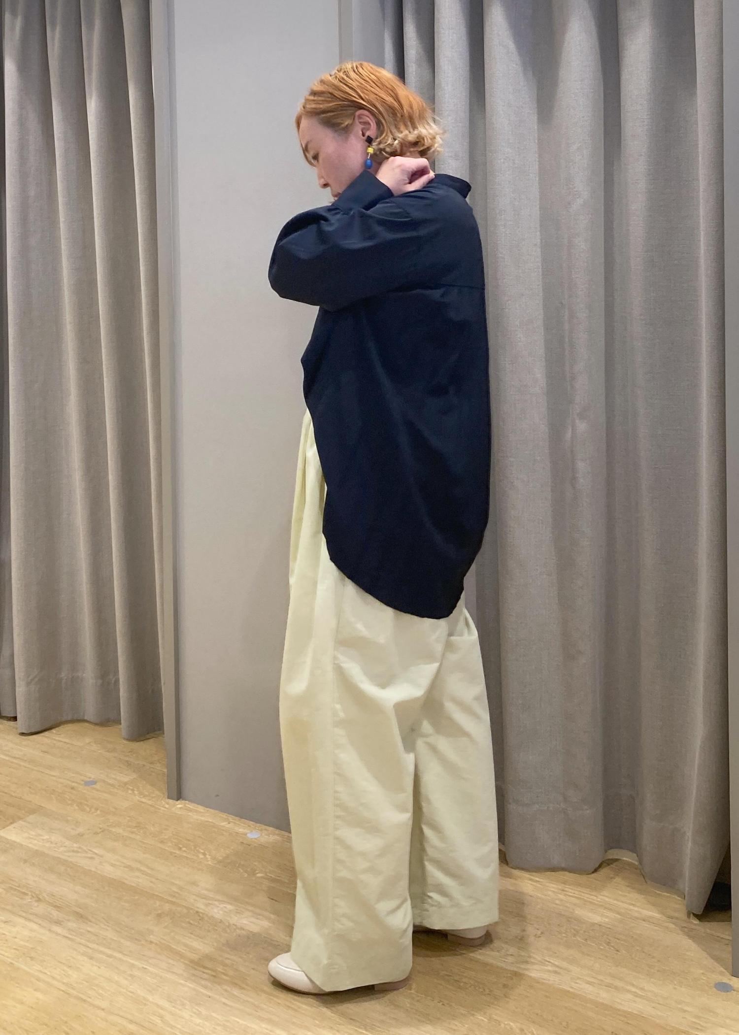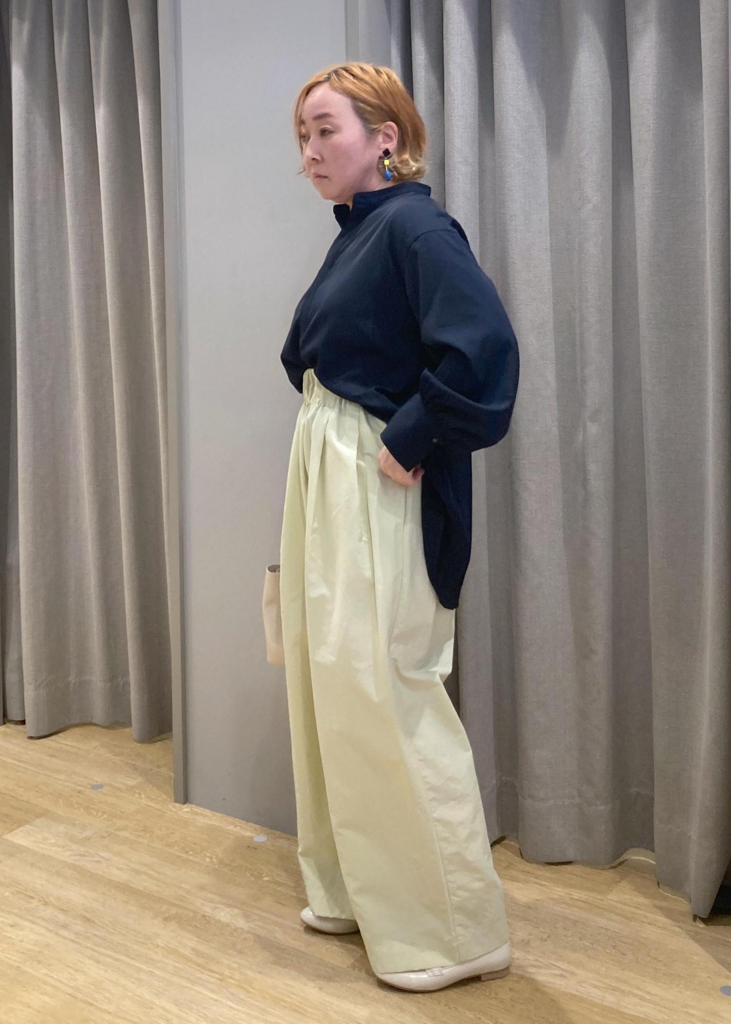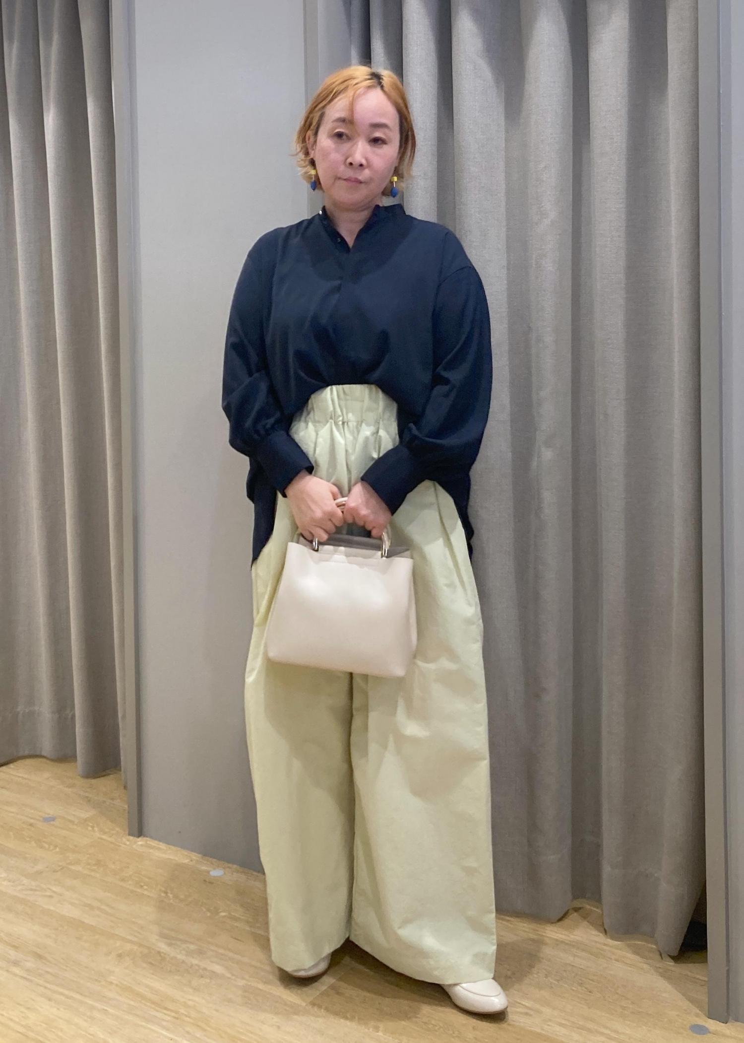 とろみのあるブラウスで、肌触りもよく、ゆったりしたシルエットですが、オチ感があるのでスッキリ細見えします。