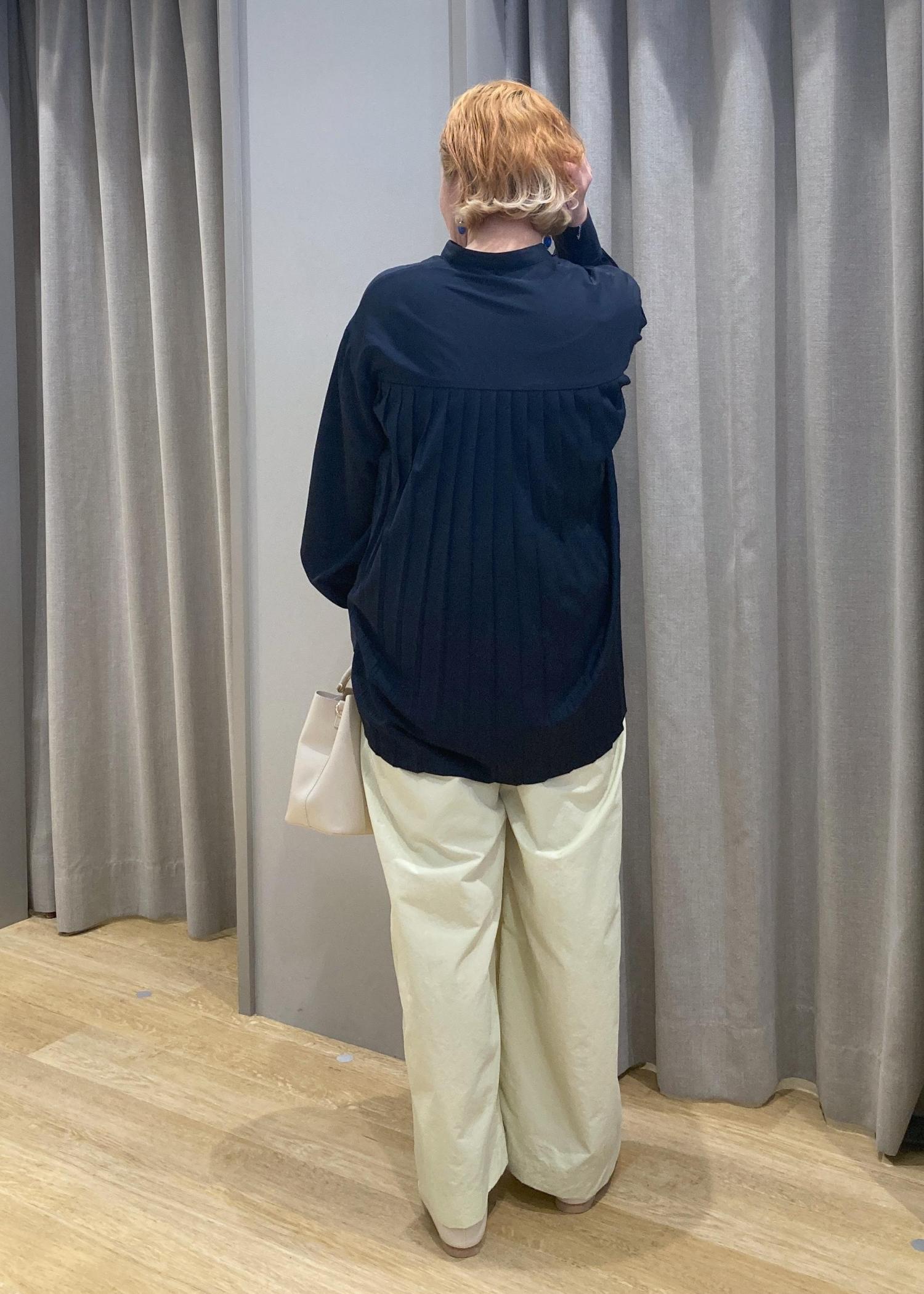 後身ごろは、プリーツが施されて後ろ姿美人アイテムです。