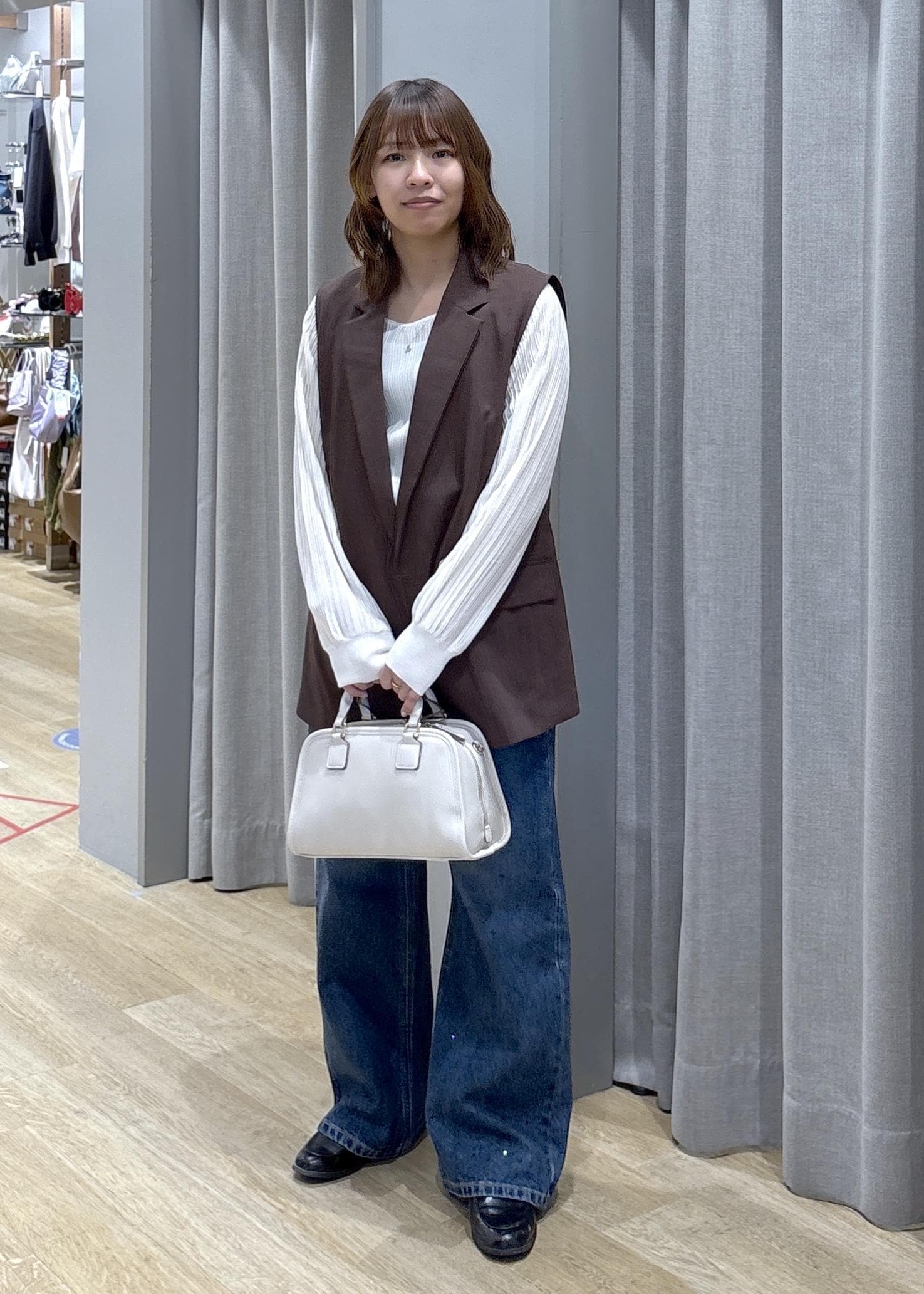 ボリュームスリーブと腰回りをフレアラインが隠してくれる細見えに特化したスタイリングができる