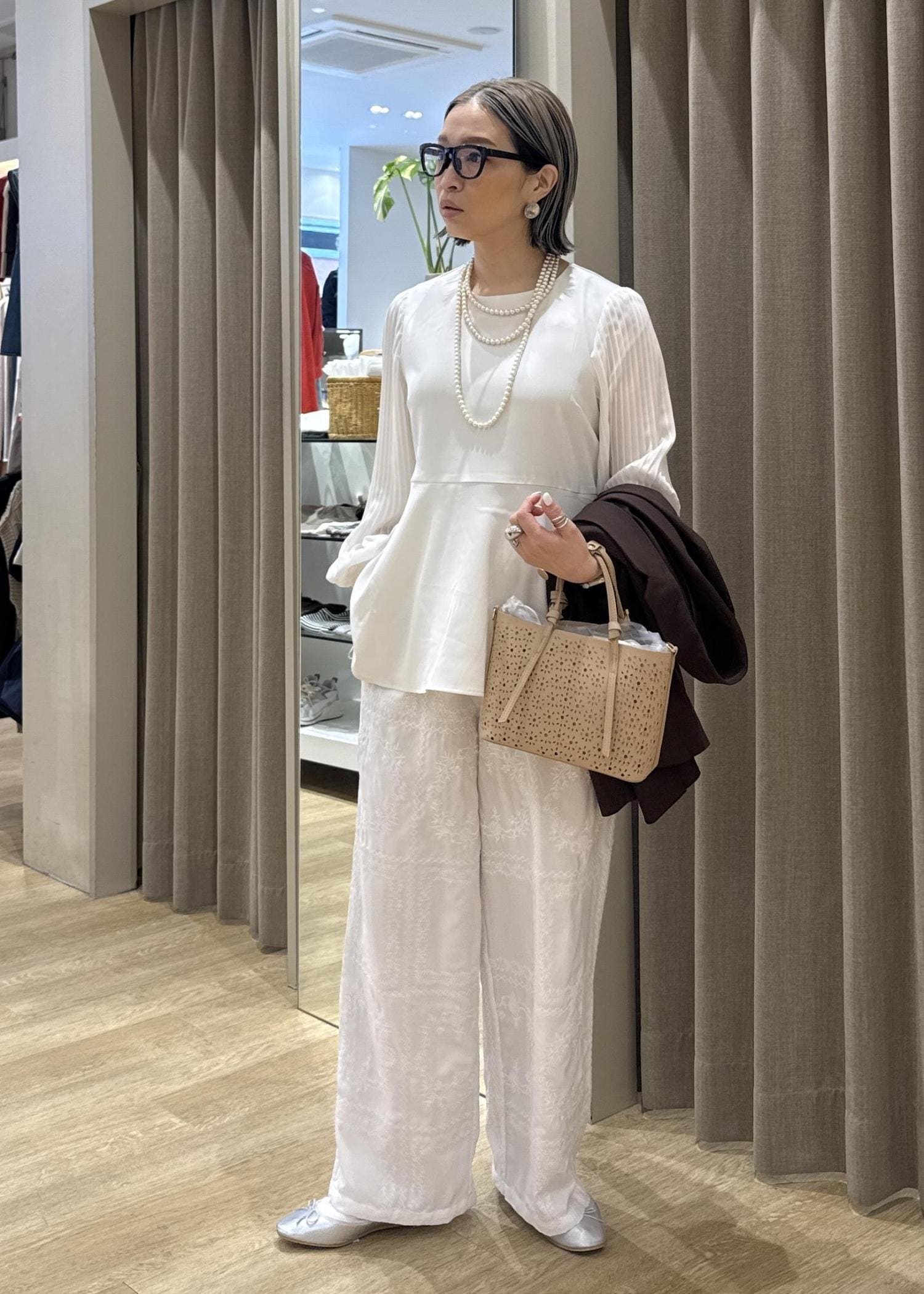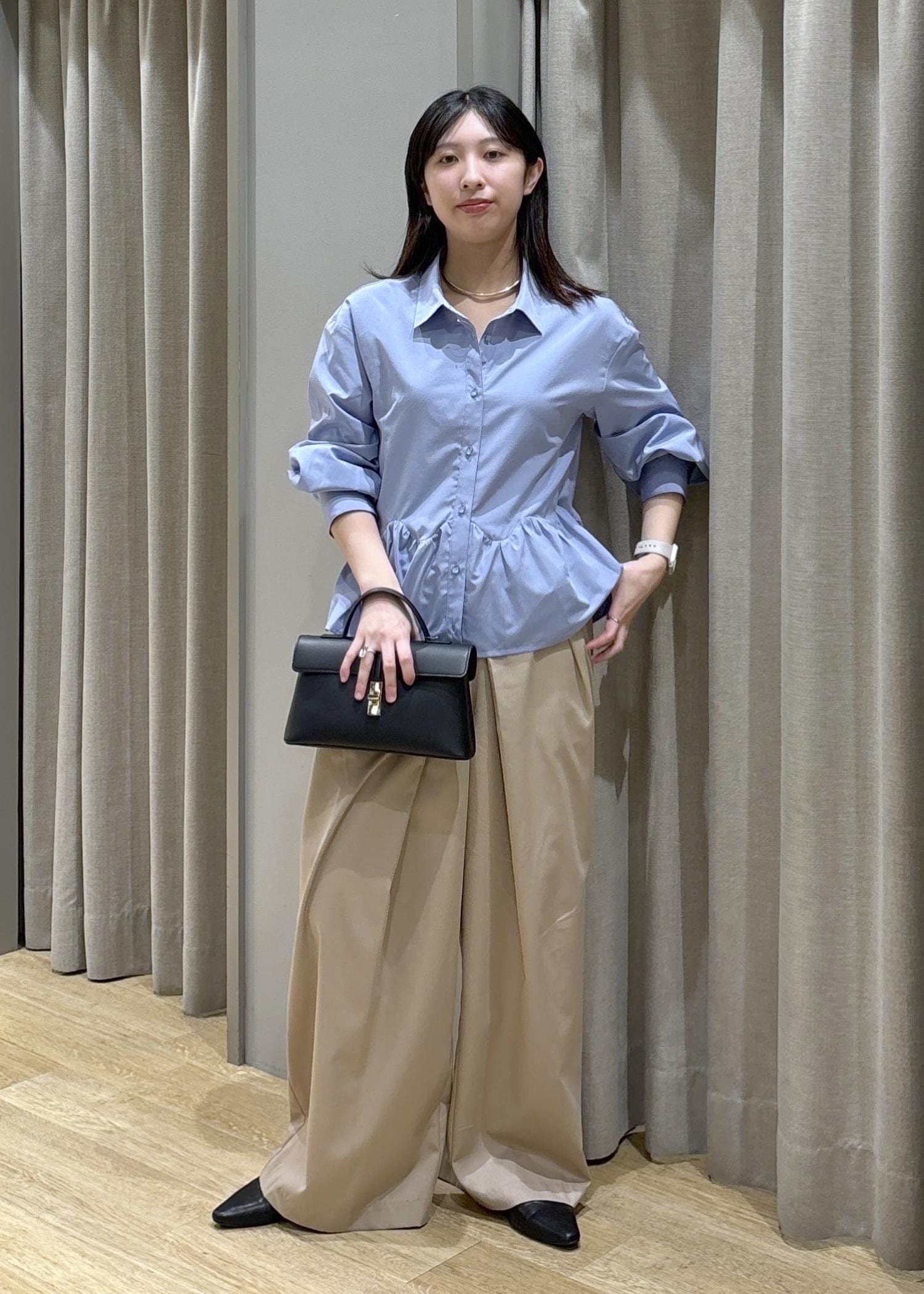 スラっとしたライン見えのパンツに、今季トレンドのリボンカーディガンを合わせて韓国風コーデにしました!