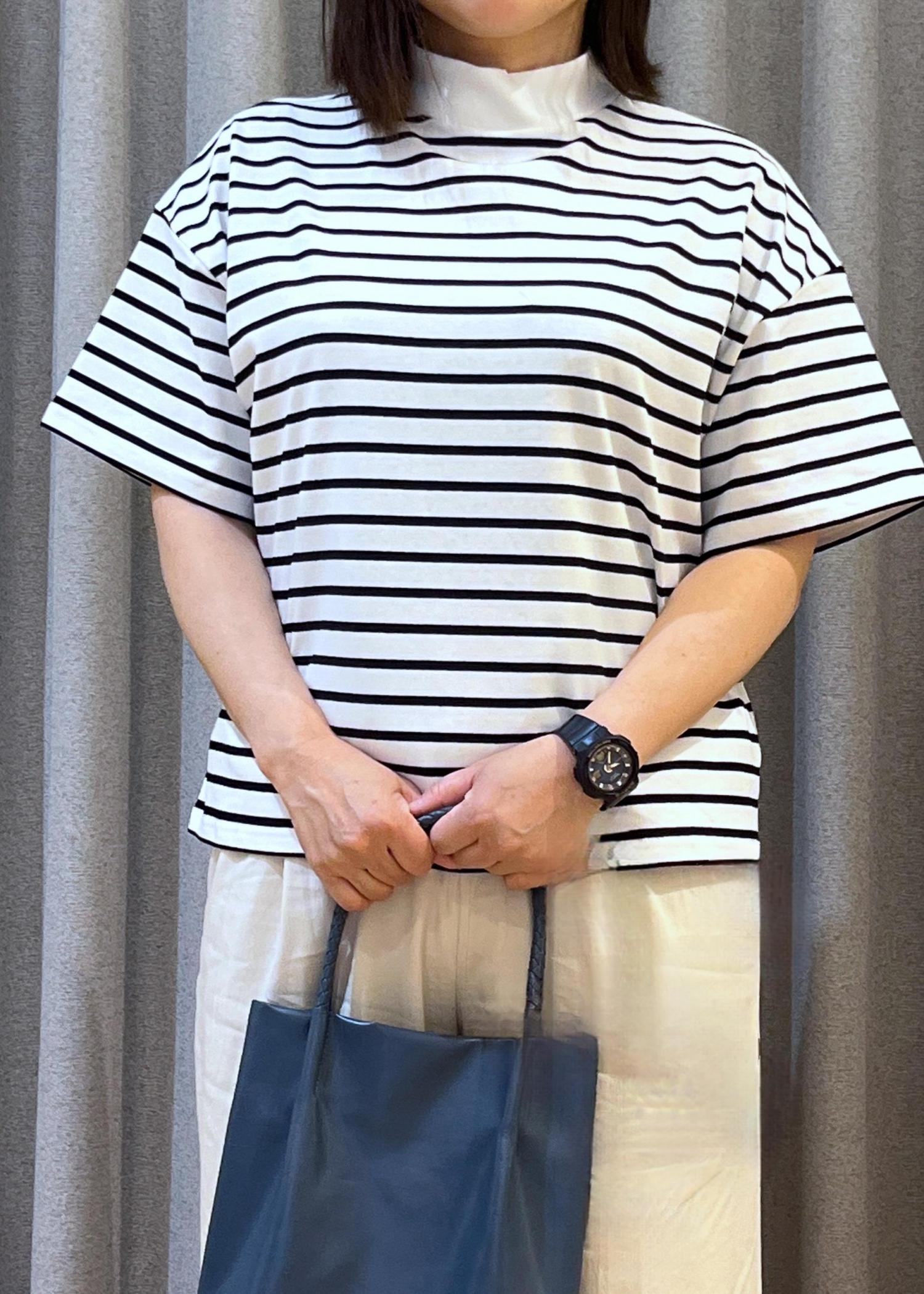 モックネックカットソーにウエストゴムの楽チンなパンツを合わせました。