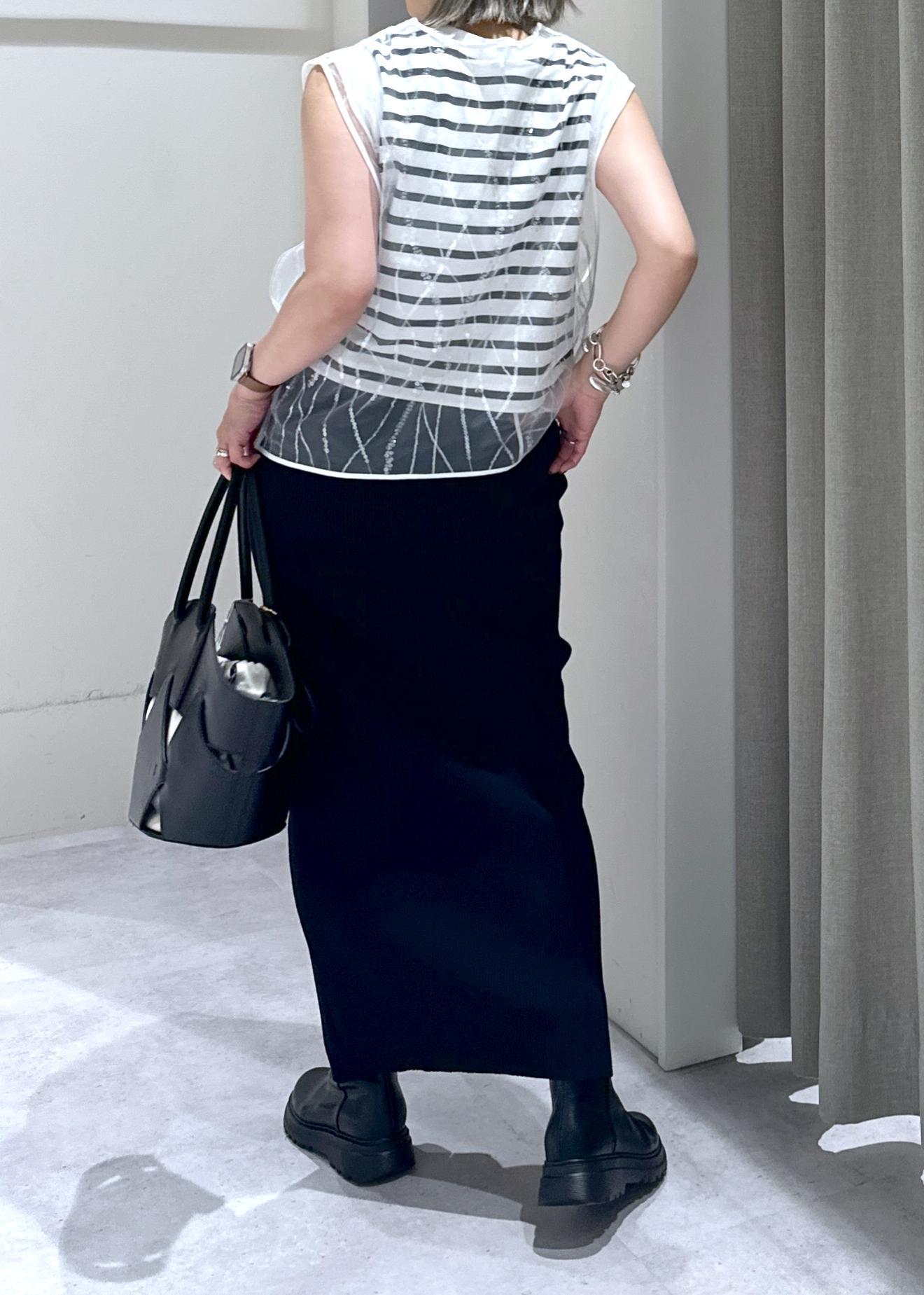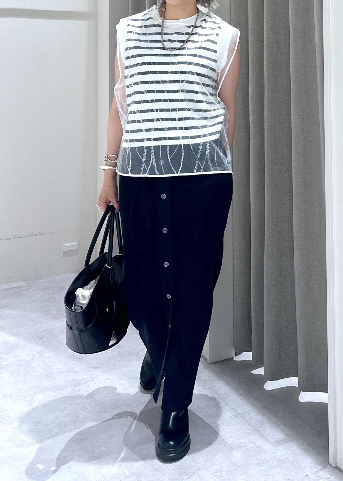 アウトレットADAM ET ROPÉ FEMME【サステナブル】スパンコールチュールxボーダーコンビプルオーバーホワイト系 / F¥5,588レビュースパンコールが全面にあしらわれているレースのプルオーバーとボーダーのフレンチスリーブカットソーがセットになっているデザイントップスです。