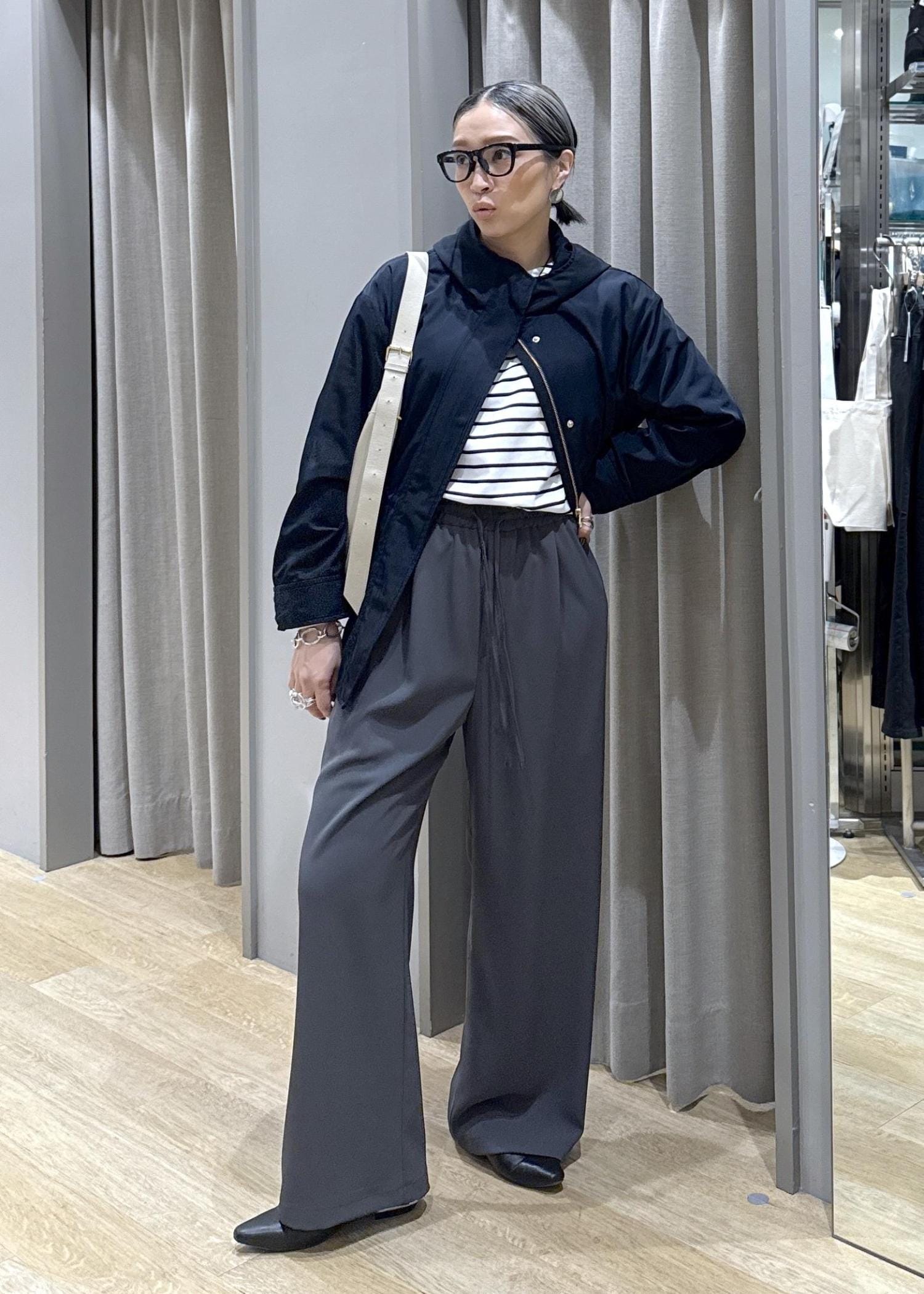 レインブーツにもなるTEMPERATEのブーツとビニールバッグで、プールやグランピングに行くイメージでコーディネートしました!