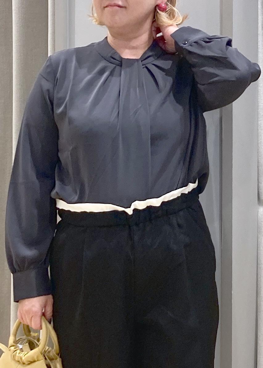 首元のボウタイ風のデザインが、アクセサリーいらずでとっても使いやすいです。