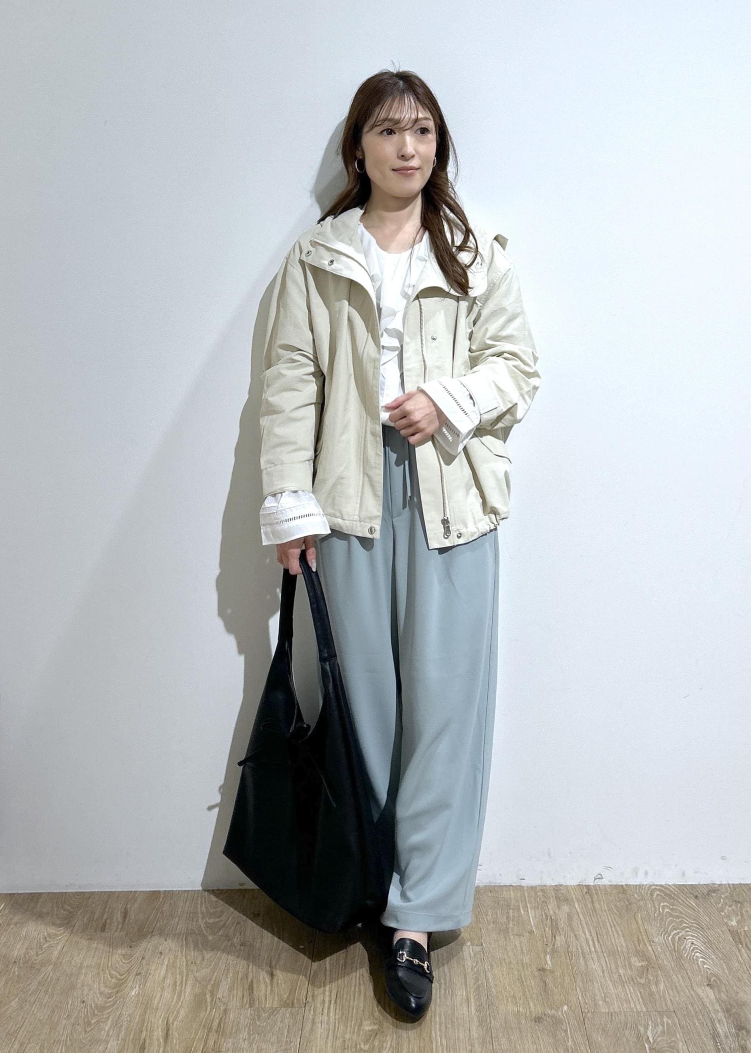 モチモチした素材のブルゾンは、パンツにもスカートにも合わせやすくサッと羽織れて便利ですよ!