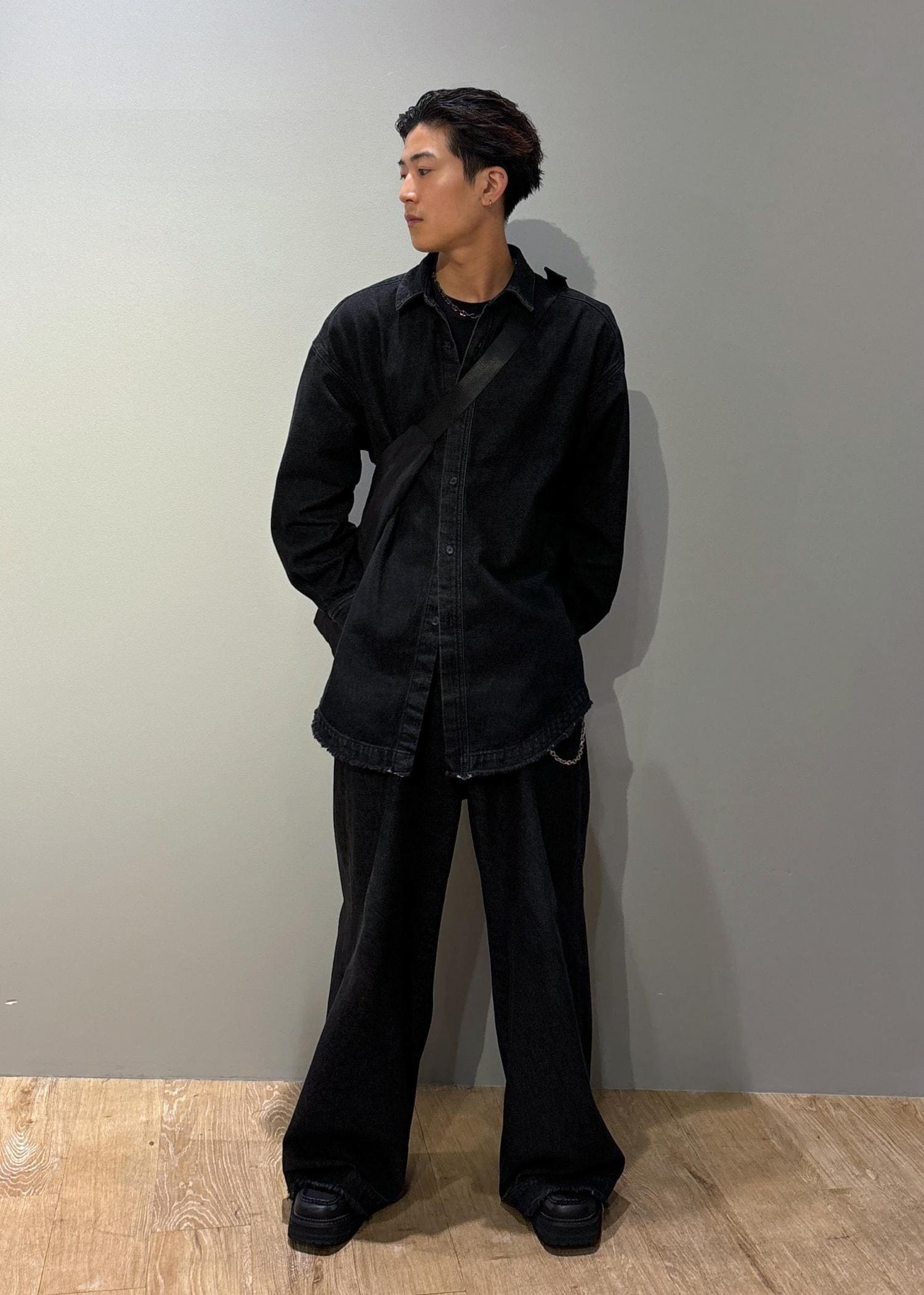 シンプルですが、デニムのセットアップなので存在感があり、それに同色で大きめのバッグを身につけることでオシャレ感も出ますね!個人的好きなスタイリングです!