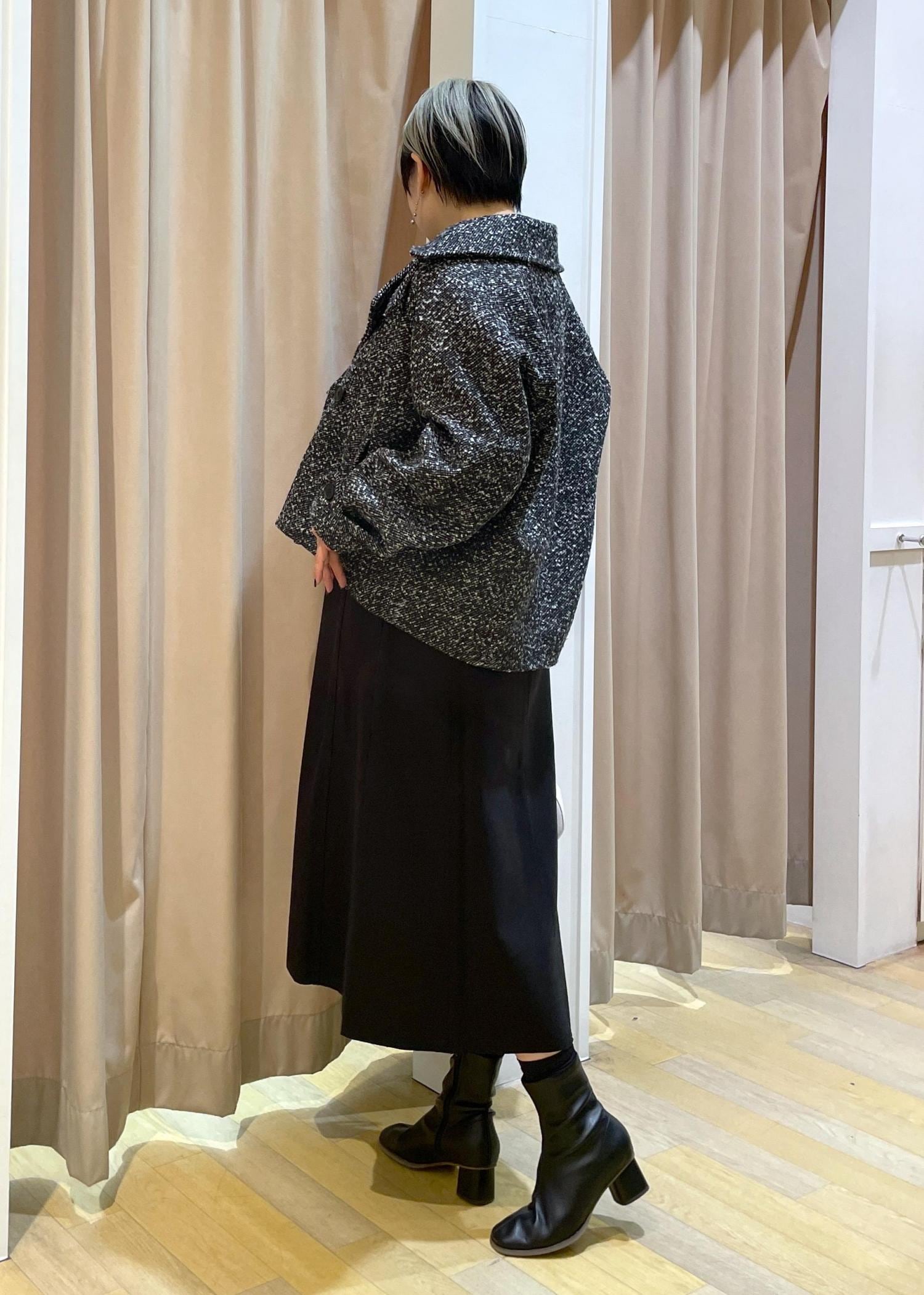 - ツイードスタンドカラーショートコート
