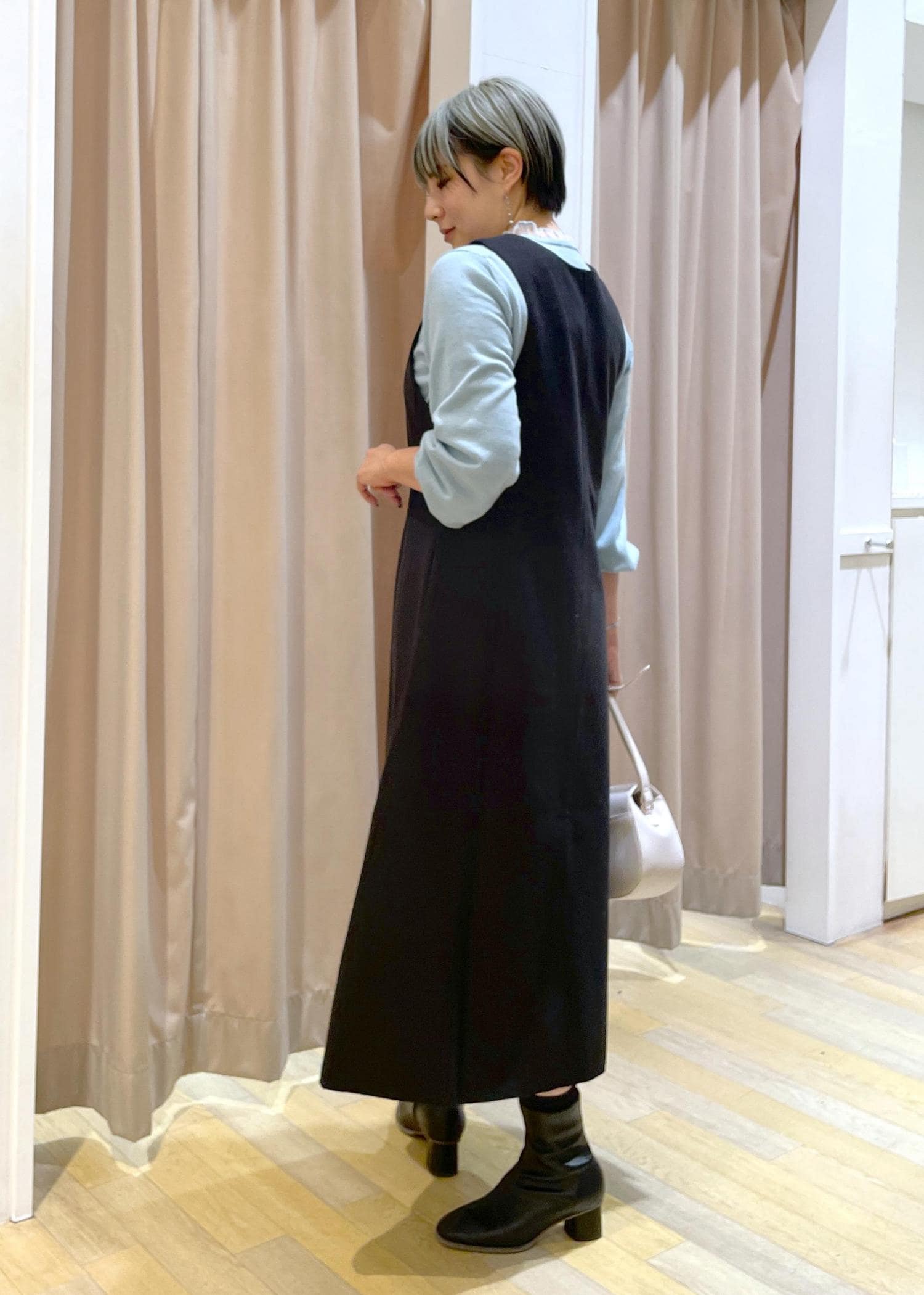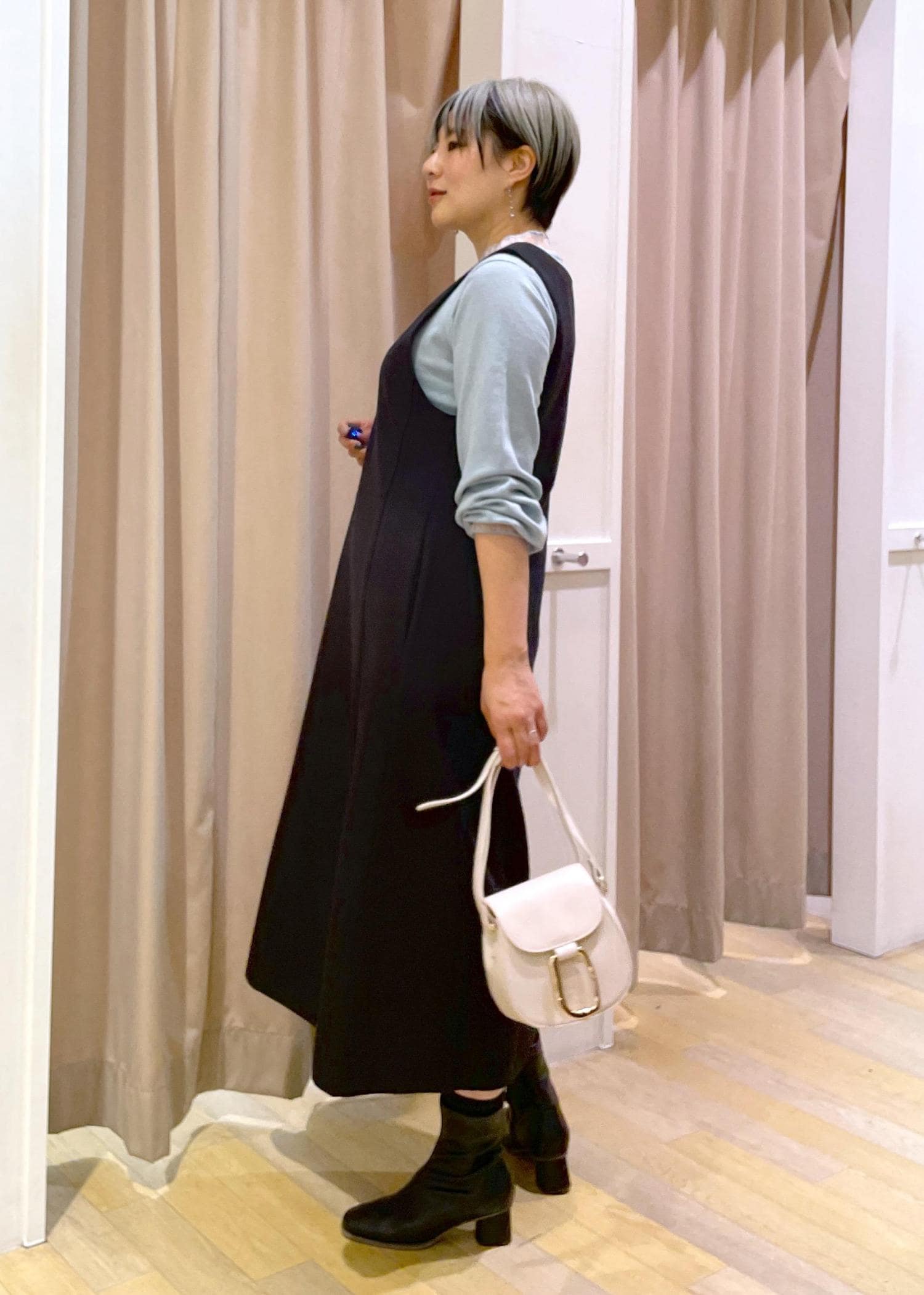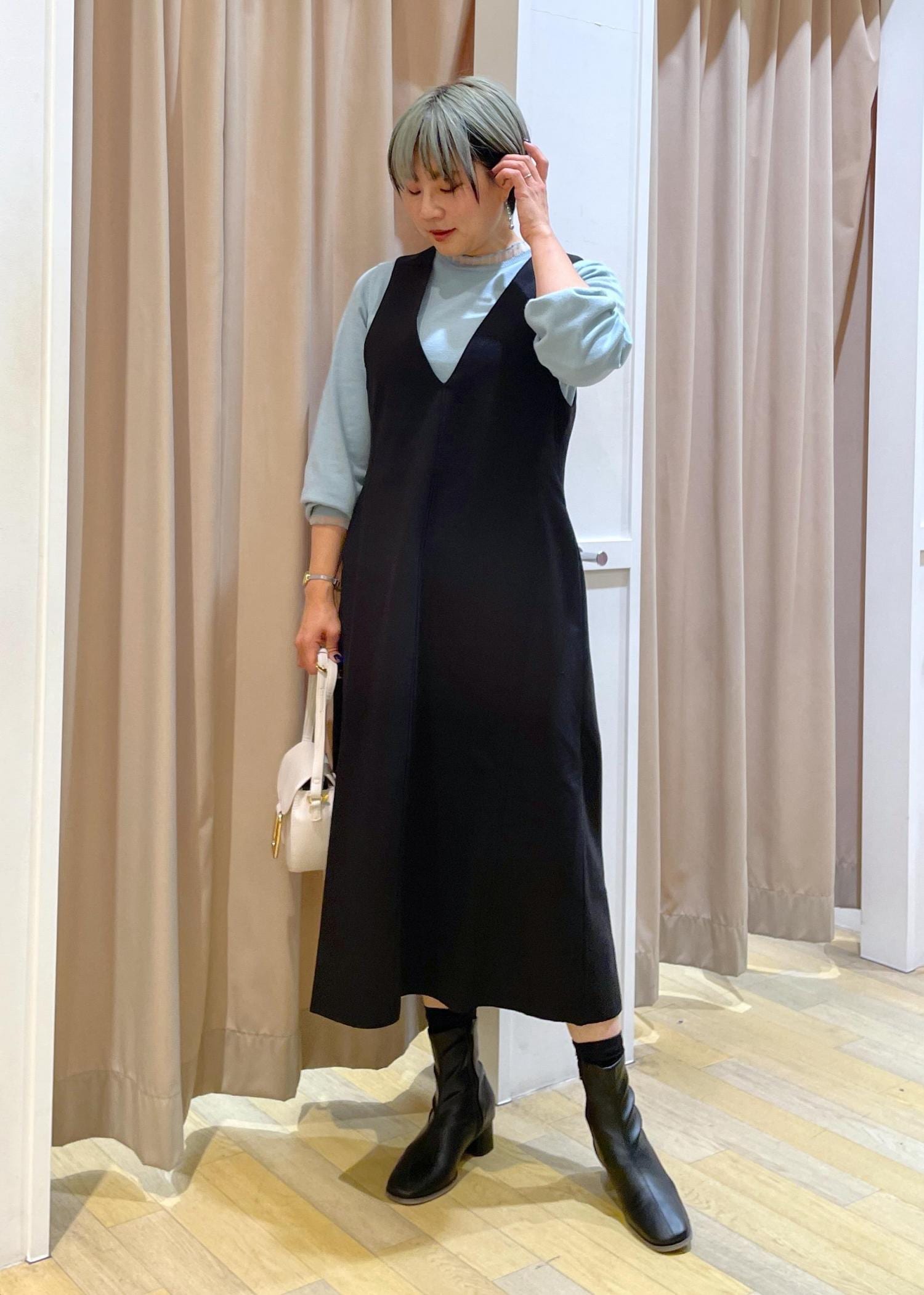 ワンピースコーデ×ショート丈コートは、バランスが取りやすく、足長効果◎