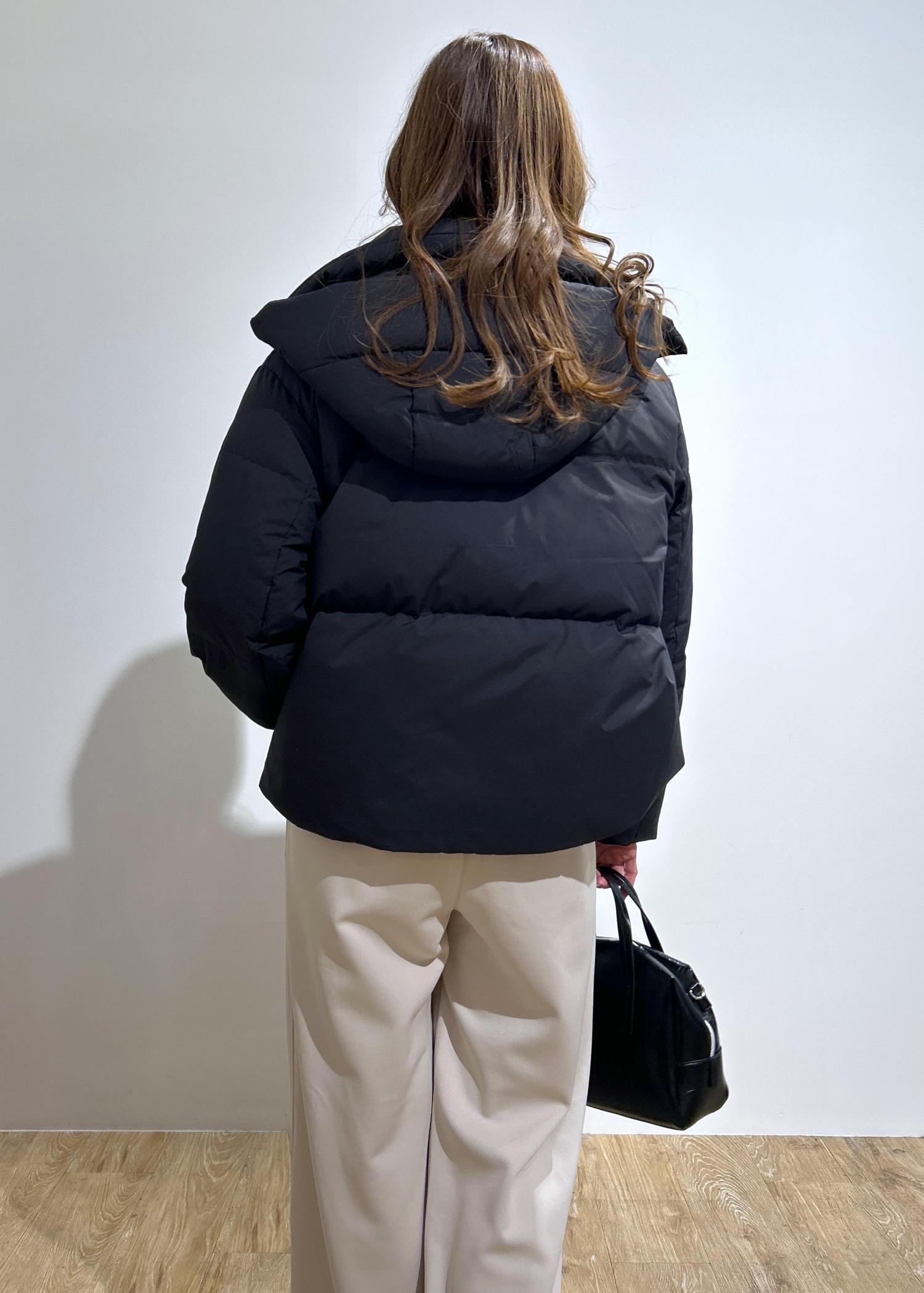ホワイトのワイドパンツとインナーのブルーが柔らかい印象に☺︎