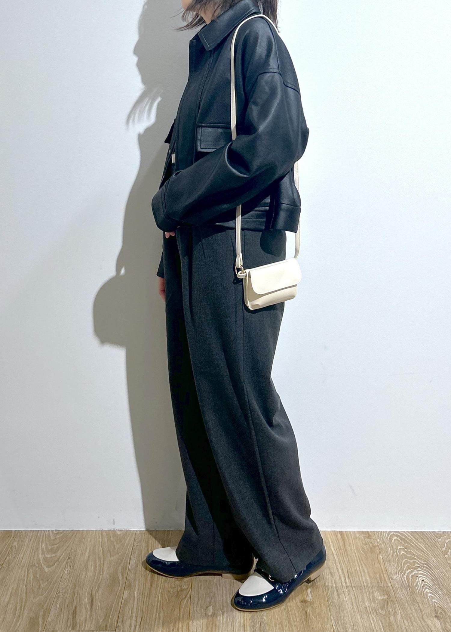 きれいめな素材感でお仕事にはもちろん、スウェットやニットなどと合わせてカジュアルコーデにもおすすめです。